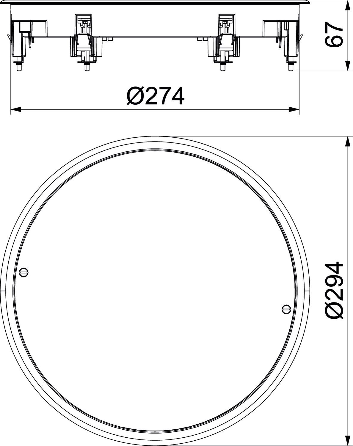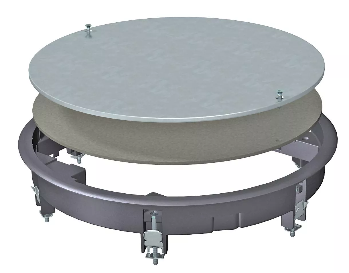 Kaseta rewizyjna do zamknięcia okrągłego otworu montażowego wielkości znamionowe R7 w systemach kanałów oraz podłogach technicznych. Z uniwersalnym uchwtem montażowym.