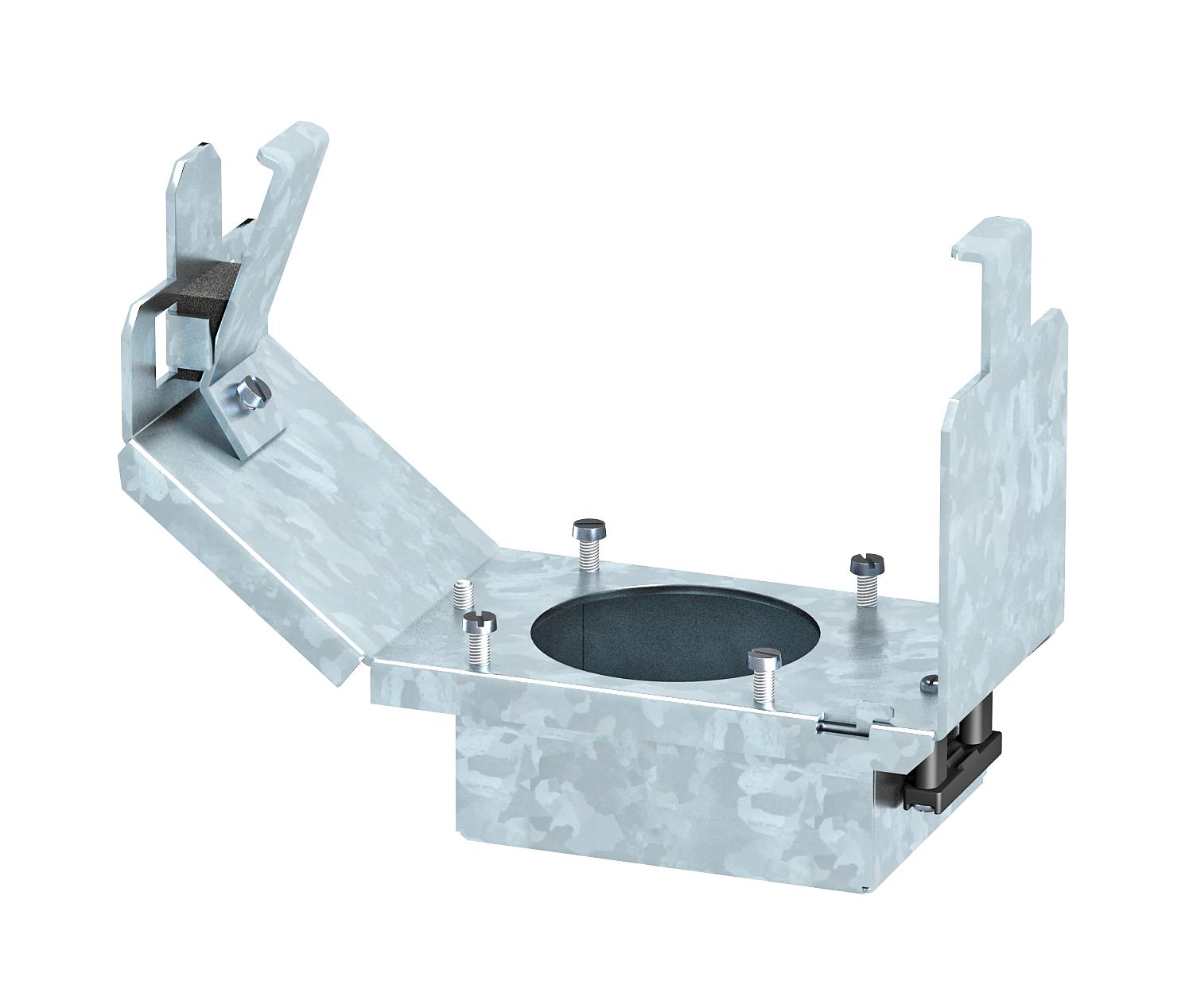 Wspornik, wielkości znamionowej 2 do montażu gniazd siłowych CEE 16 A lub 32 A w kasetach zasilających i kasetach o wielkości znamionowej 2, 4, 6 i R7. Wspornik z obudową ochronną i odciążeniem ciągu. Wymagana, minimalna głębokość montażowa to 190 mm.