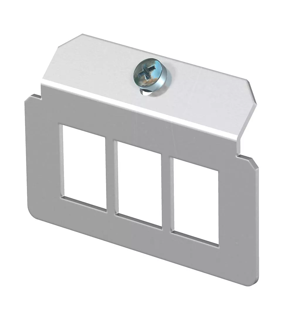 Płytka montażowa na trzy moduły przyłączeniowe teleinformatyczne typu: AMP TYCO: SL Serie 110Connect u. Toolless, AMP-Twist; Brand-Rex: ungeschirmt; GG45; TKM RJ MOD; Nexans: LANmark z klipsem adaptera.