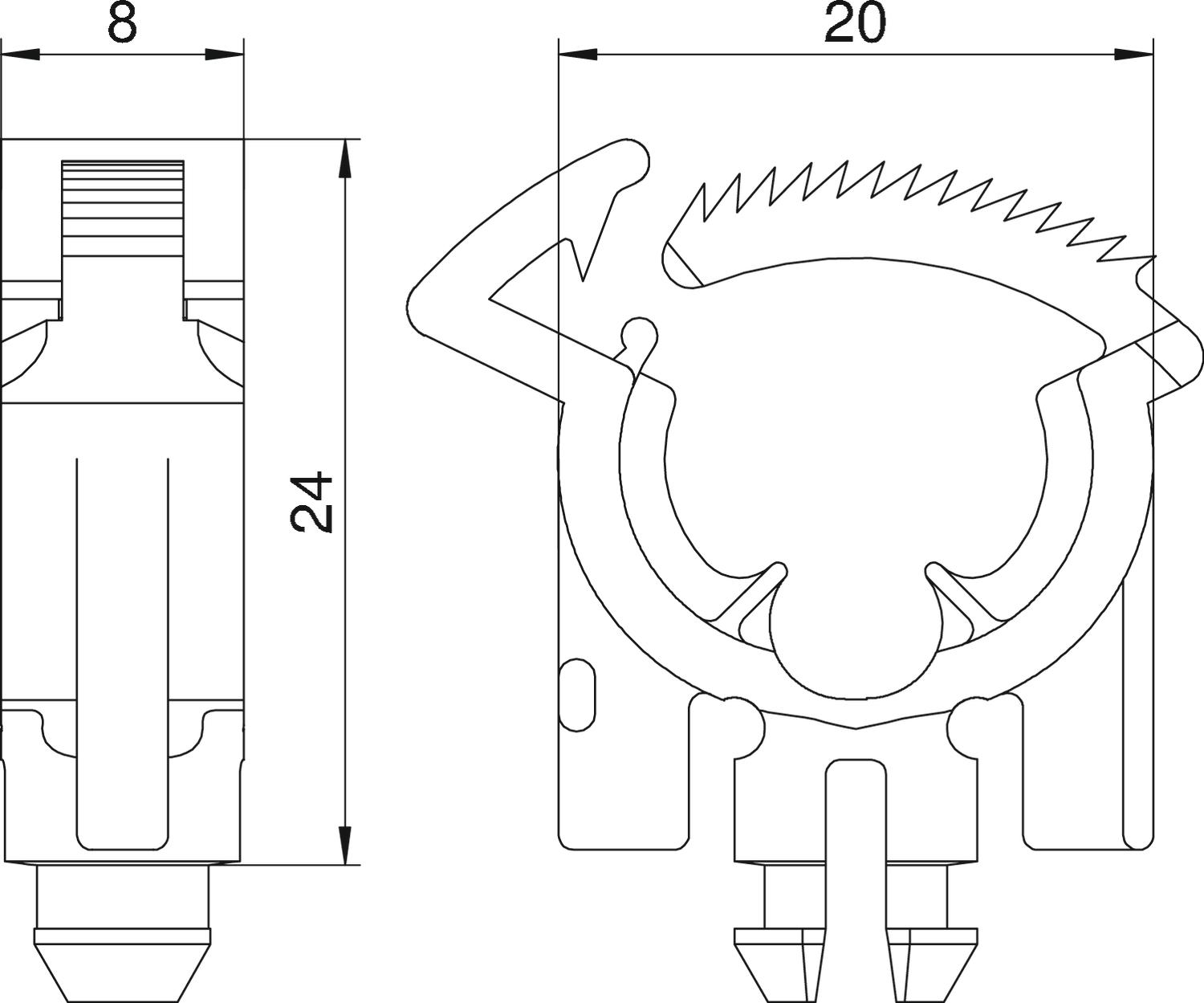 Odciążenie ciągu do zastosowania w ramkach montażowych puszek instalacyjnych lub w puszkach napodłogowych T4L i T8NL ze zgodnym z normami odciążeniem ciągu przewodów doprowadzających.