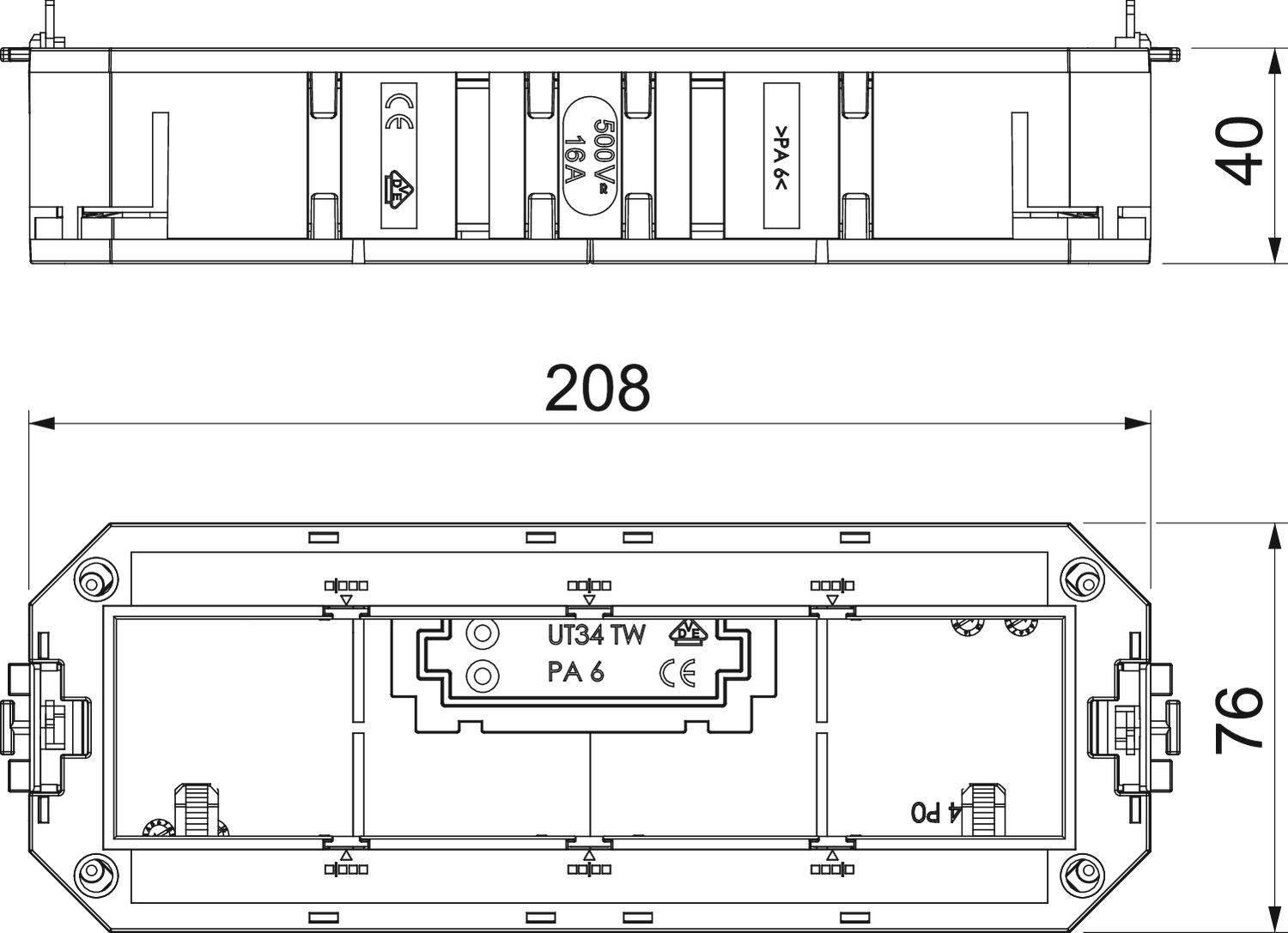 Uniwersalna puszka instalacyjna z dwoma odciążeniami ciągu dla przewodów, przegrodą i ramką montażową UT4 P4 do montażu 4 x Modul 45 w kasetach wielkości znamionowej R7, R9 i 9.