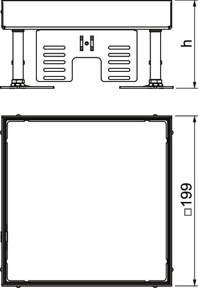 Kwadratowa kaseta do wysokich obciążeń „zaślepiona", do zamknięcia otworu rewizyjnego wielkości znamionowej 4 w systemach kanałów podpodłogowych i podłogach technicznych, czyszczonych na sucho i mokro. Klasa obciążeń 1 do 10 kN. Przeznaczona tylko do podłóg gładkich.