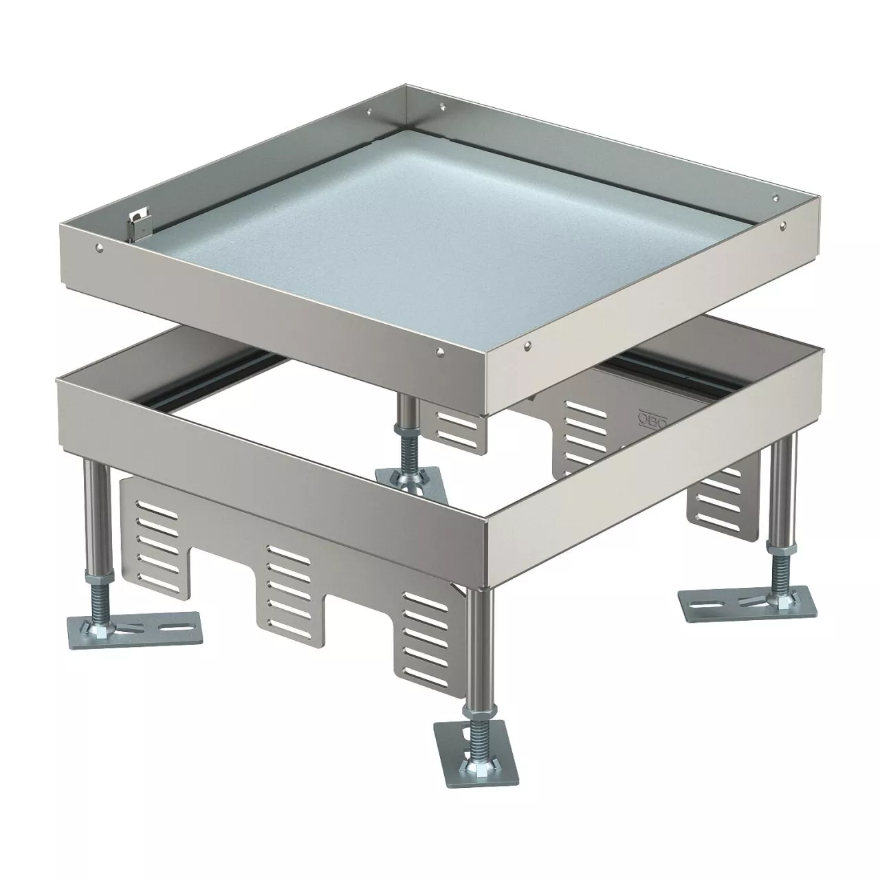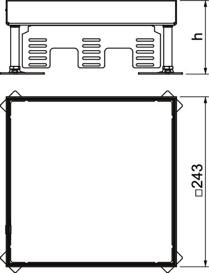 Kwadratowa kaseta do wysokich obciążeń „zaślepiona", do zamknięcia otworu rewizyjnego wielkości znamionowej 9 w systemach kanałów podpodłogowych i podłogach technicznych, czyszczonych na sucho i mokro. Klasa obciążeń 1 do 10 kN. Przeznaczona tylko do podłóg gładkich.