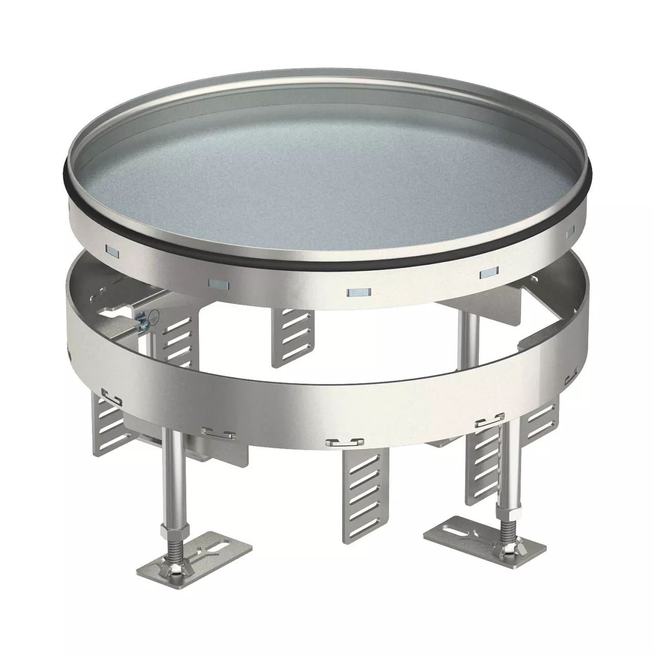 Okrągła kaseta do wysokich obciążeń „zaślepiona", do zamknięcia otworu rewizyjnego wielkości znamionowej R7 w systemach kanałów i podłogach technicznych, czyszczonych na sucho i mokro. Klasa obciążeń 2 do 20 kN. Przeznaczona tylko do podłóg gładkich.