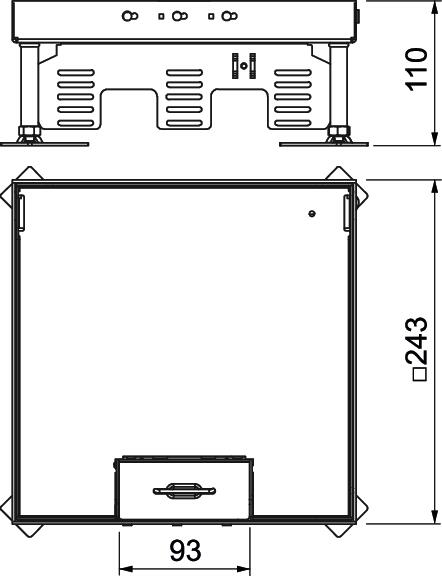 Regulowana kaseta zasilająca wielkości znamionowej 9 z wyjściem przewodu, do montażu osprzętu elektroinstalacyjnego w podłogach czyszczonych na sucho.