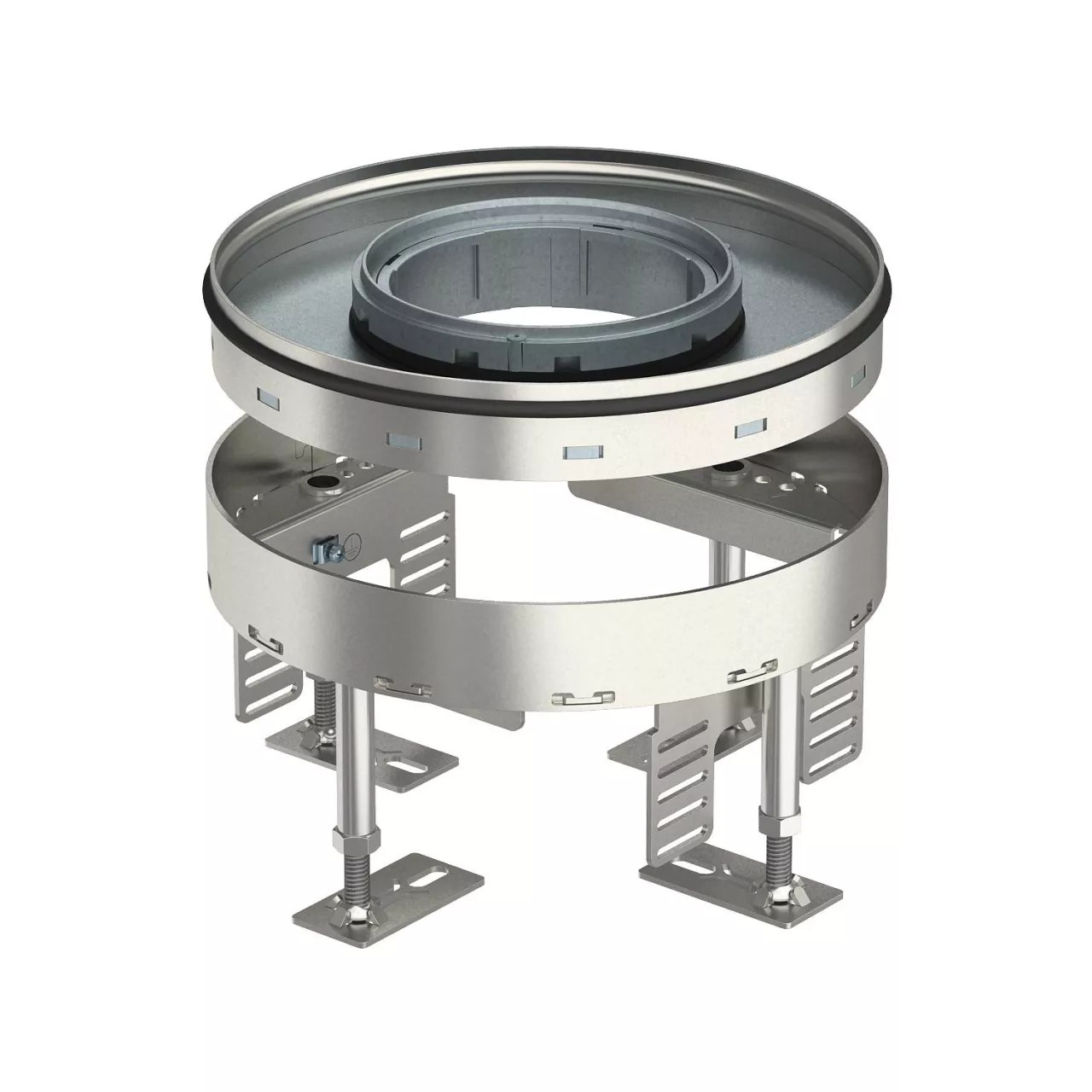 Regulowana kaseta zasilająca wielkości znamionowej R4 z otworem na tubus, do montażu osprzętu elektroinstalcyjnego w podłogach czyszczonych na sucho i mokro.