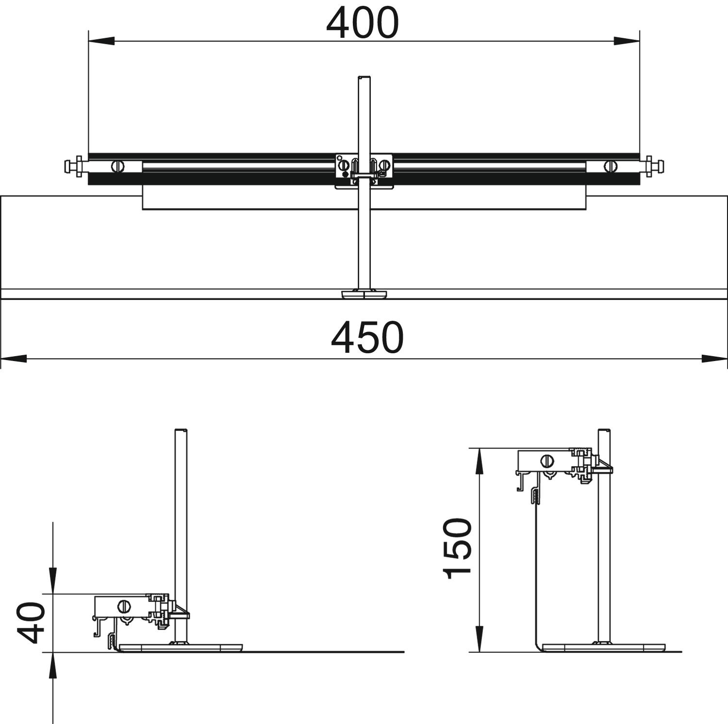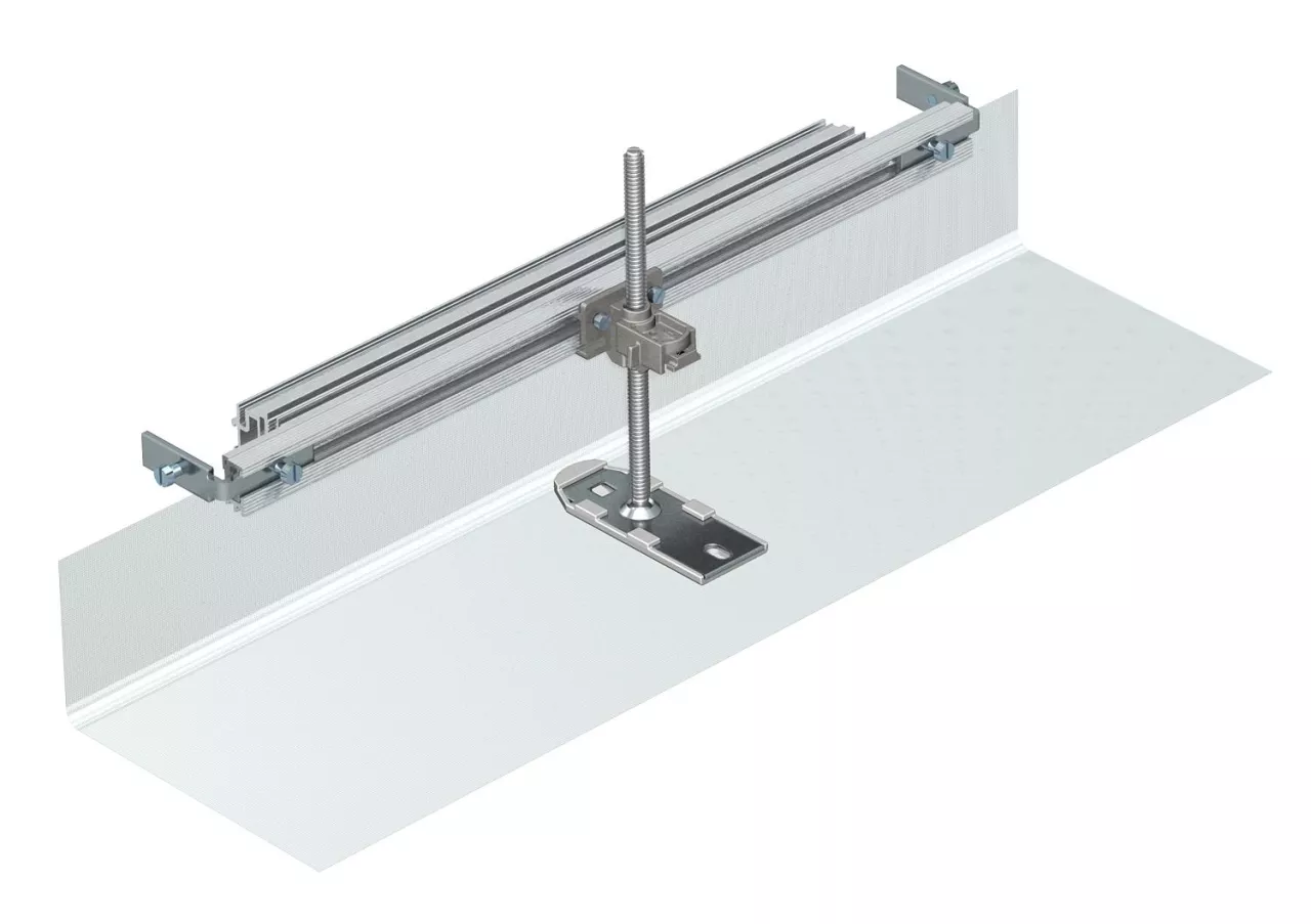 Gotowe do montażu końcówki kanału, składające się z elastycznych profili bocznych z metalowej siatki i profili wykładziny podłogowej. W komplecie znajdują się kątowniki przyłączeniowe kanałów i kątownik mocujący o regulowanej wysokości.