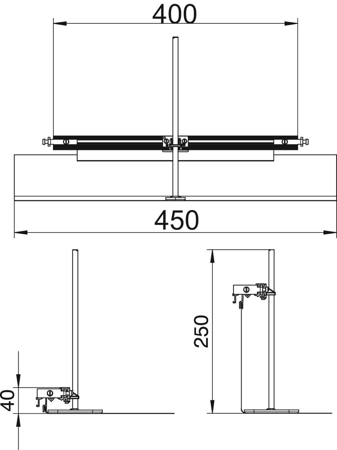 Gotowe do montażu końcówki kanału, składające się z elastycznych profili bocznych z metalowej siatki i profili wykładziny podłogowej. W komplecie znajdują się kątowniki przyłączeniowe kanałów i kątownik mocujący o regulowanej wysokości.