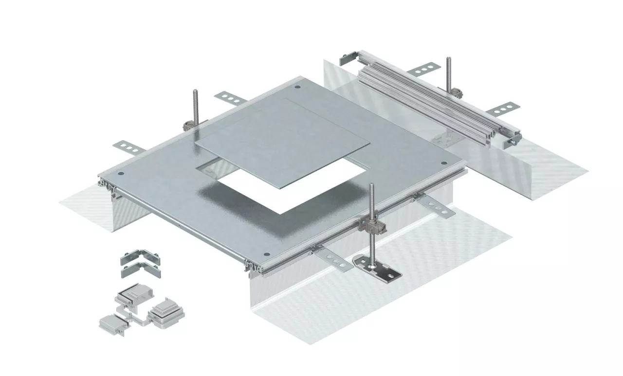 Gotowa do montażu jednostka kanału z pokrywą do montażu kasety zasilającej wielk. znam. 4, składająca się z elastycznych profili bocznych z metalowej siatki, profili nakładanych wykładziny podłogowej, pokrywy kanału z zaślepionym otworem montażowym i końcówki kanału. W komplecie znajdują się są 3 kątowniki mocujące o regulowanej wysokości, 3 kotwy do jastrychu, 1 wspornik styku pokrywy (bez elementu niwelującego - proszę zamawiać osobno) i 1 podzespół do rozgałęzienia kątowego.