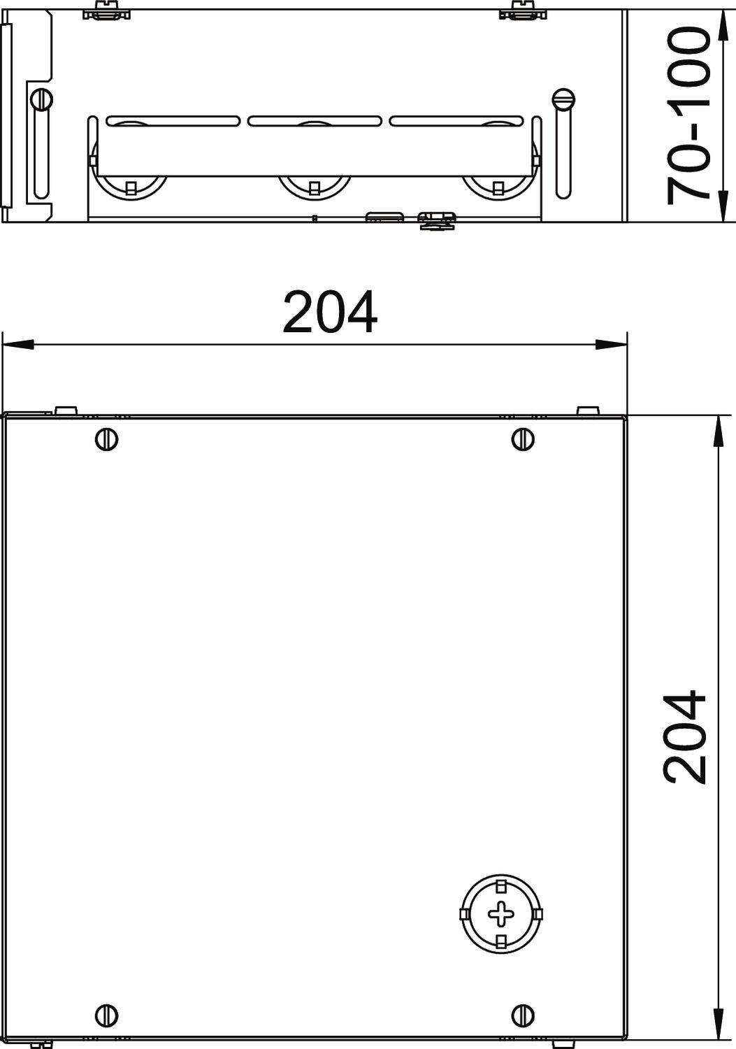 Minimalna głębokość montażowa 70 mm, zakres regulacji + 30 mm.