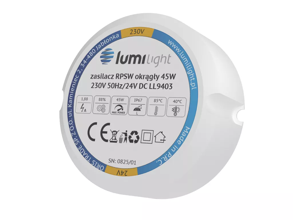 Zasilacz RPSW 45W 24V DC IP67 okrągły
