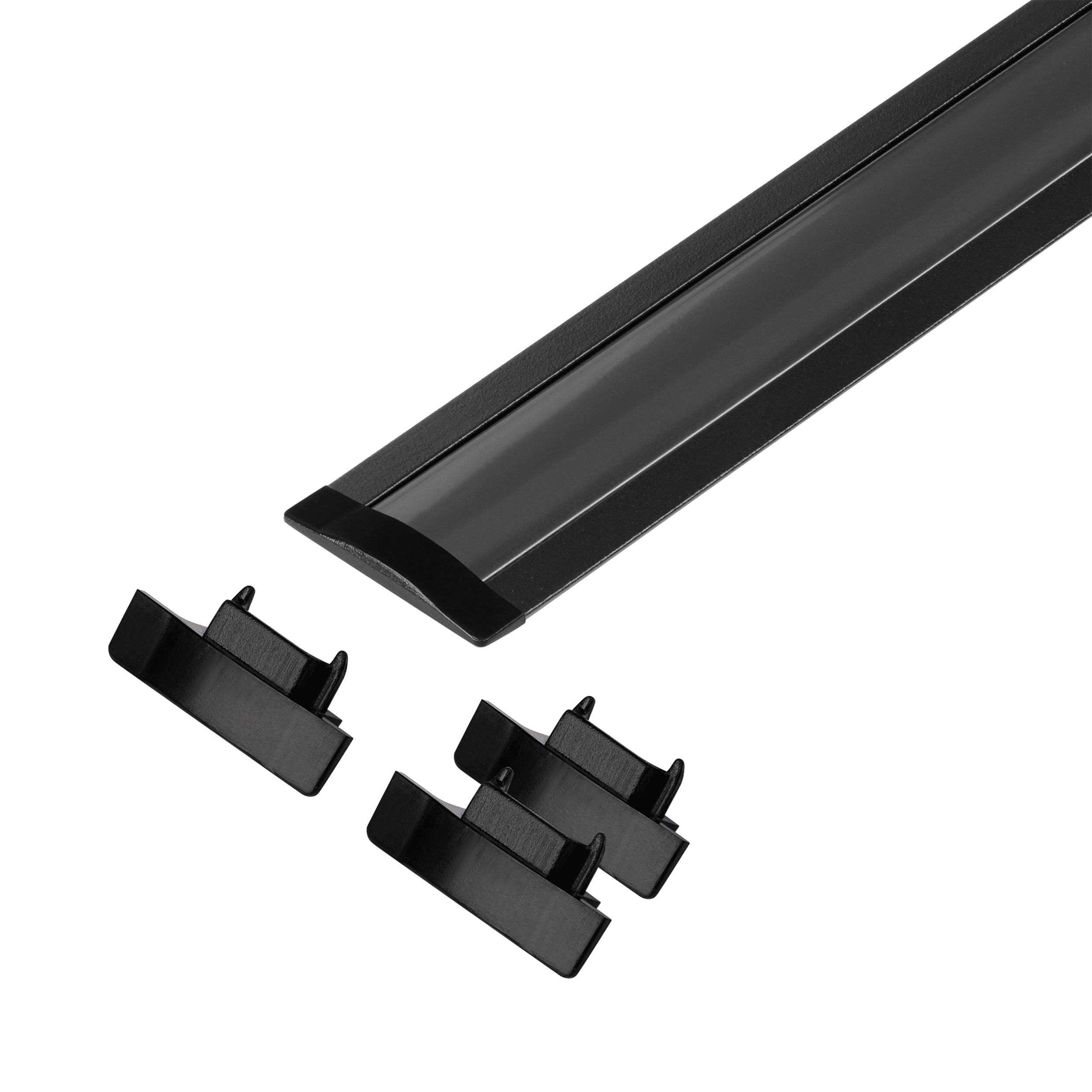 Zestaw: profil aluminiowy do taśm LED, 2000 x 24,5 x 6,05 mm, podtynkowy, czarny, klosz czarny, 4 zaślepki