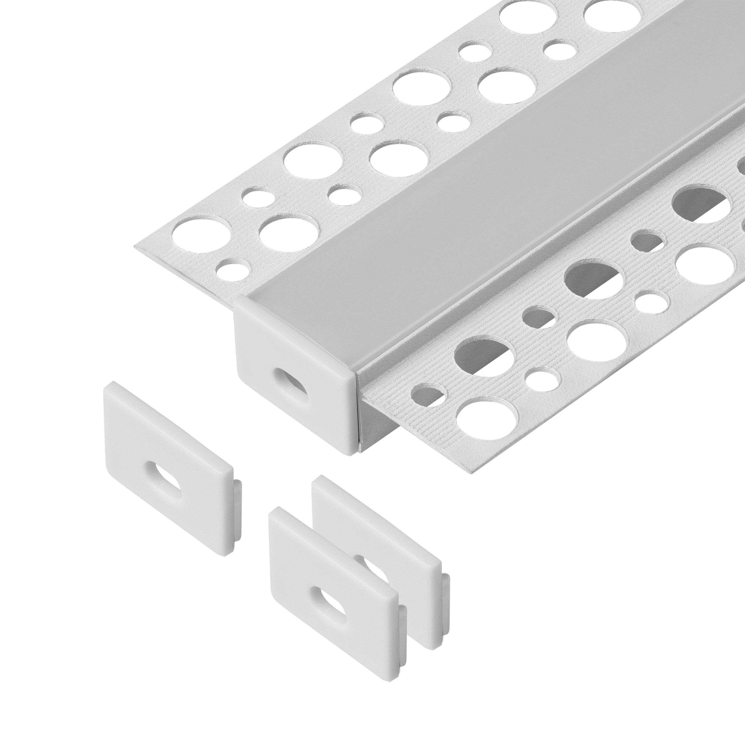 Zestaw: profil aluminiowy do taśm LED, 2000 x 55,8 x 12,5 mm, podtynkowy, biały, klosz mrożony, 4 zaślepki