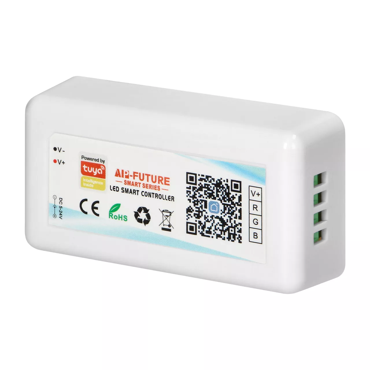 Bezprzewodowy sterownik Tuya to innowacyjne rozwiązanie umożliwiające zarządzanie oświetleniem taśm LED RGB. Synchronizacja kontrolera z aplikacją mobilną zapewnia wygodę użytkowania (brak pilota). Instalacja dedykowanej aplikacji na telefon (Android/iOS) umożliwi sterowanie oświetleniem za pomocą asystentów głosowych, takich jak Alexa czy Google.