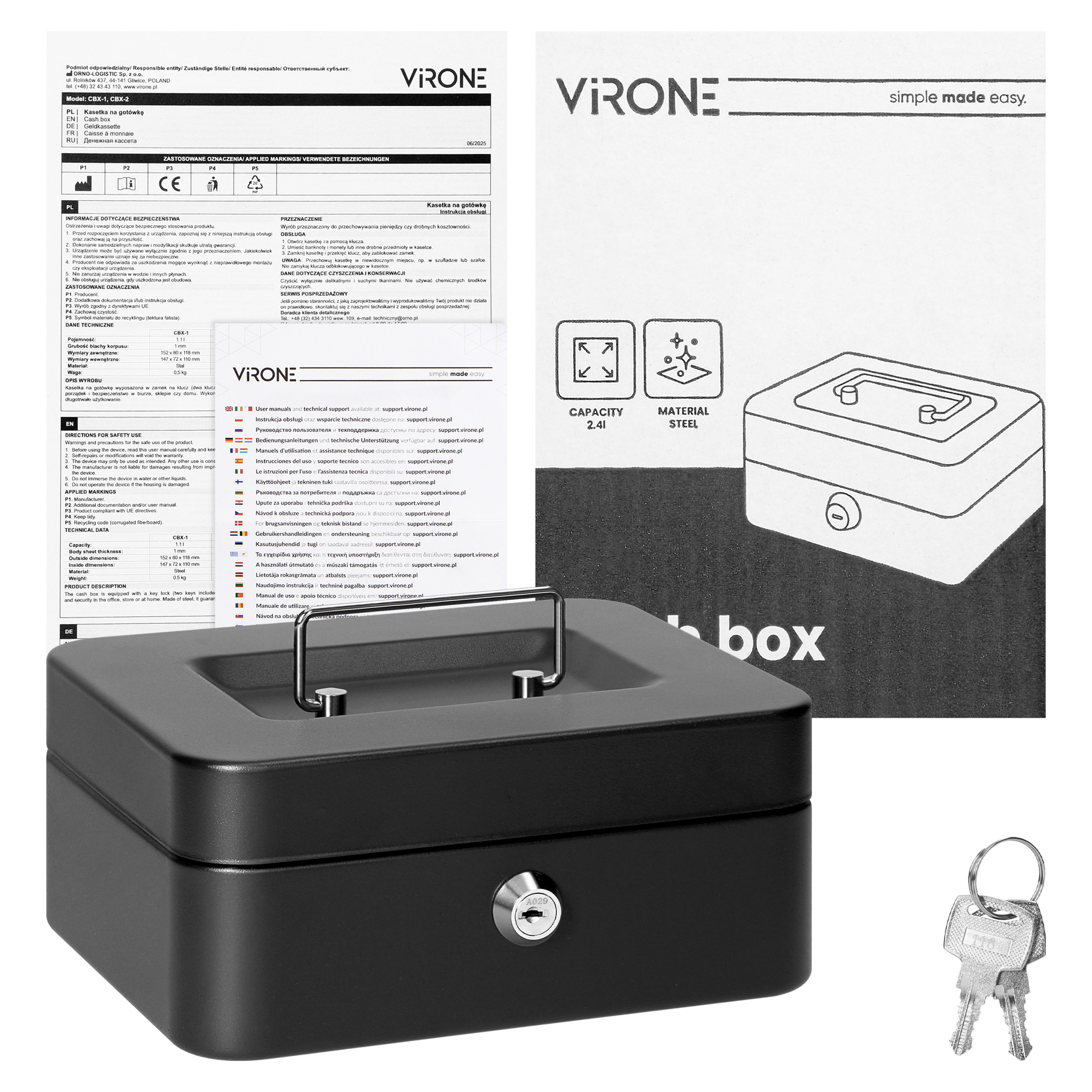 Kasetka na gotówkę, średnia, wymiary: 200 x 160 x 90 mm