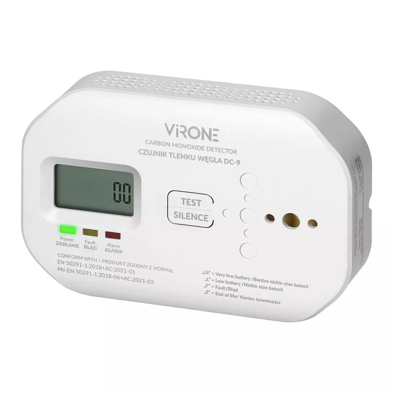 Bateryjny czujnik tlenku węgla (czadu), 2xAA, żywotność sensora 10 lat