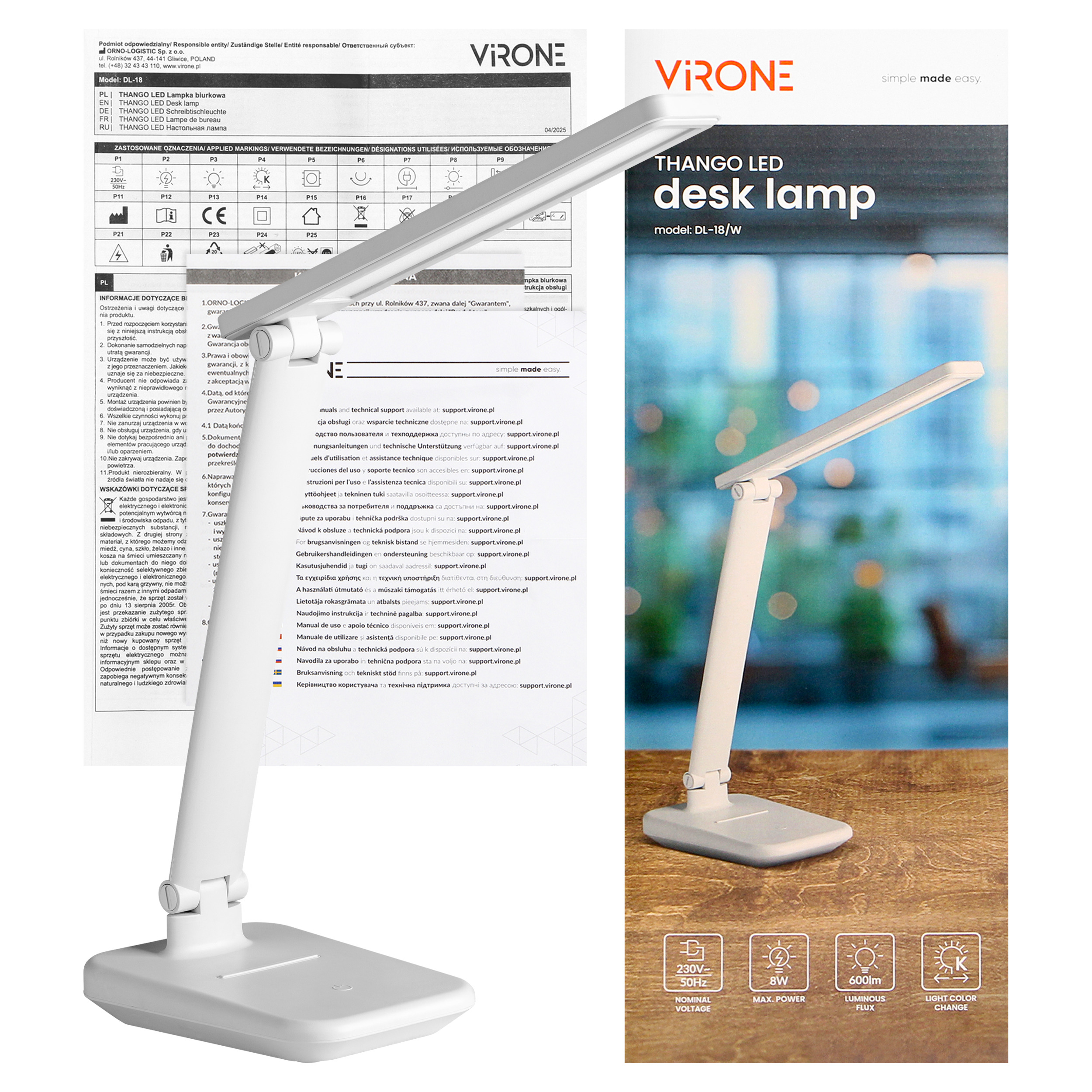 THANGO LED, lampka biurkowa, 8W, 600lm, 3000-4000-6000K, zmiana barwy światła, funkcja ściemniania, biała
