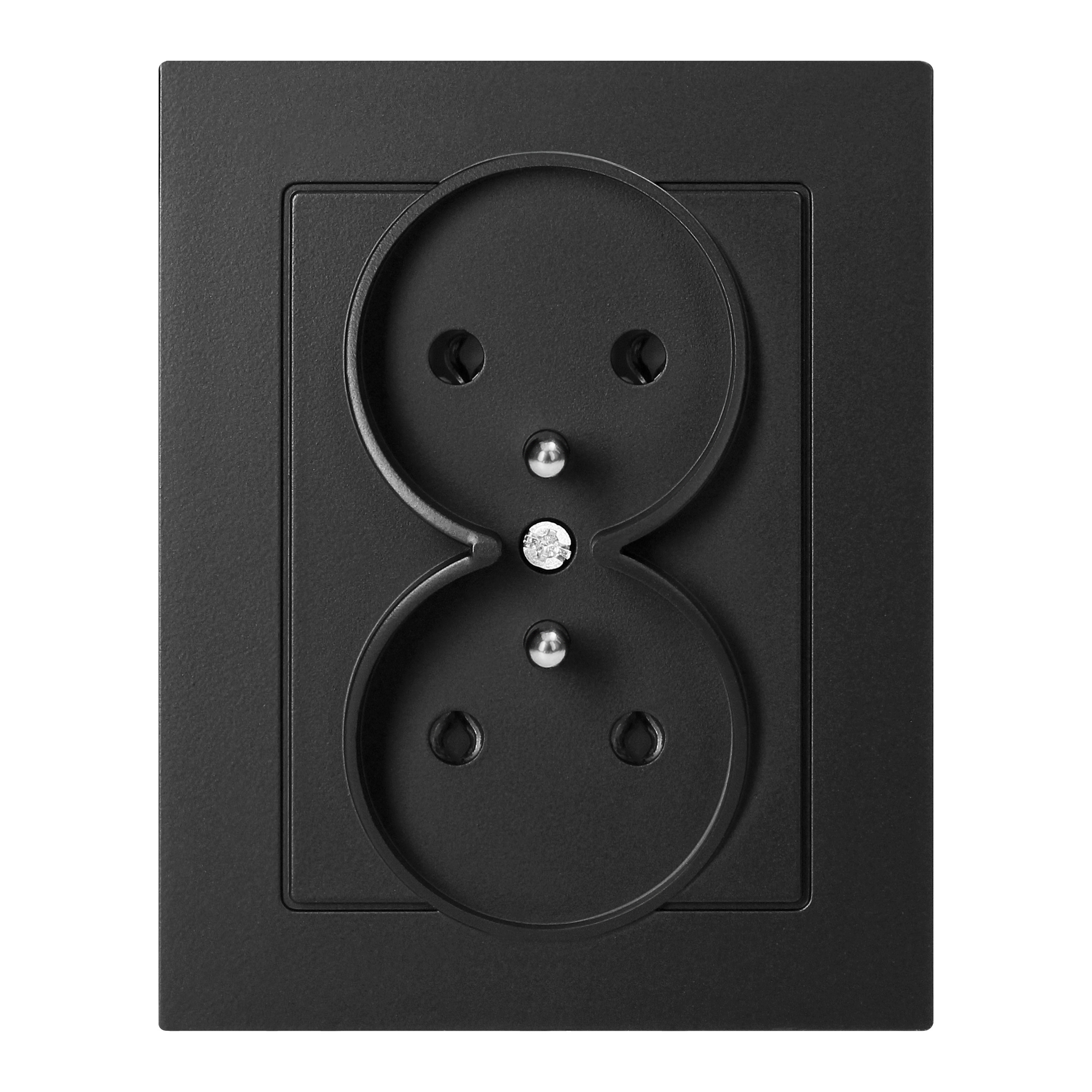 Gniazdo podwójne p/t 2x2P+Z Malta, 16A, 250V, PT-6M, czarny mat