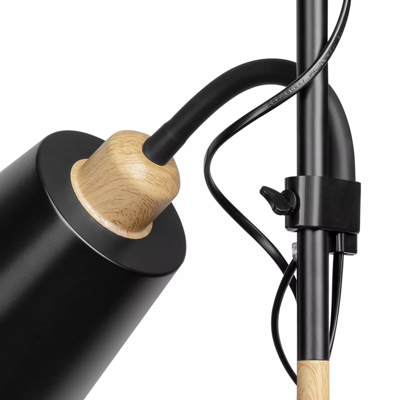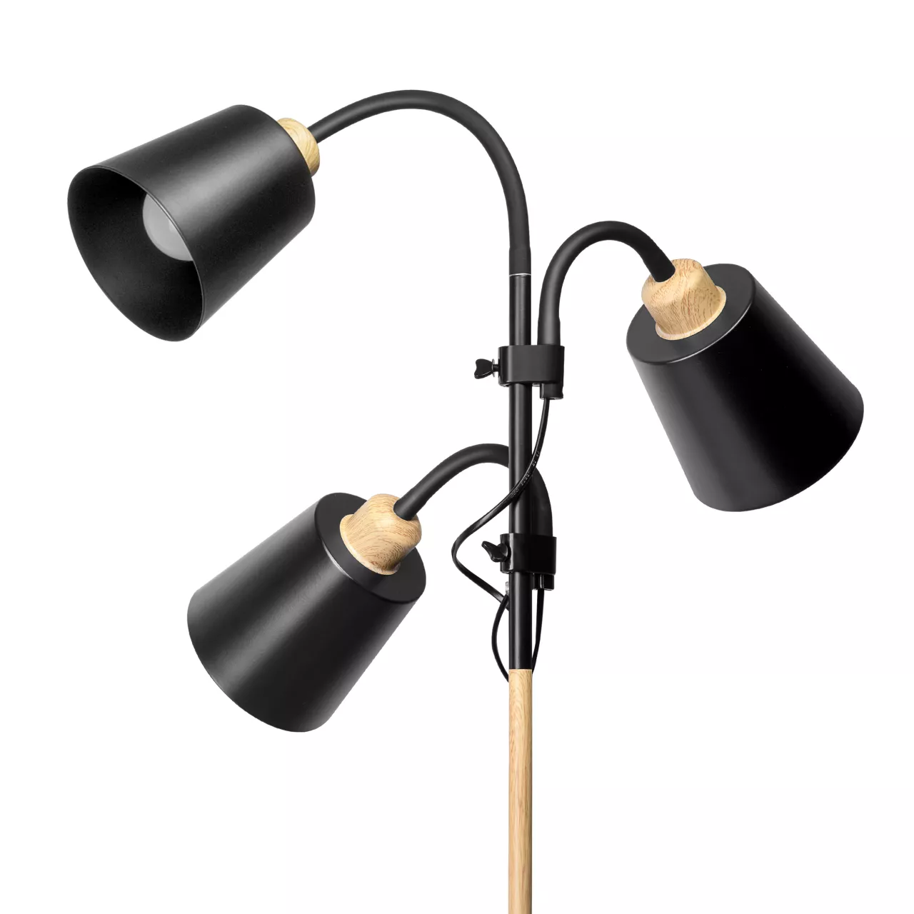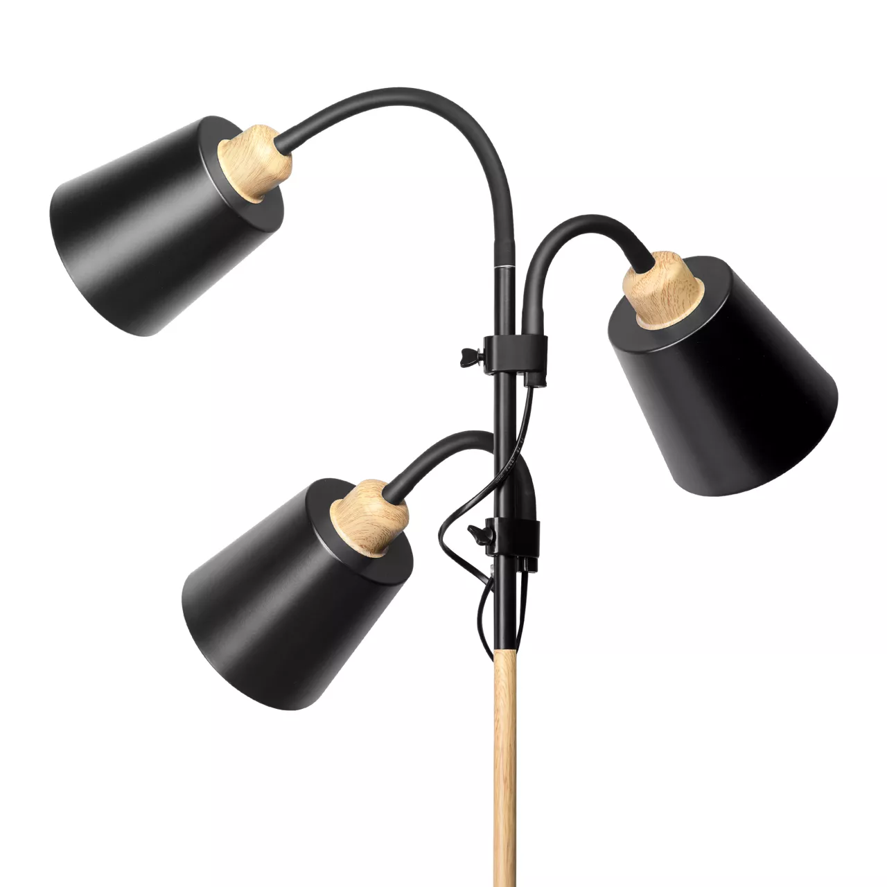 Lampa podłogowa GRACE 3P to funkcjonalne oświetlenie, którego prosta forma w połączeniu z klasyczną czernią i subtelnymi elementami z drewna harmonijnie wpisuje się zarówno w nowoczesne, jak i bardziej klasyczne aranżacje.