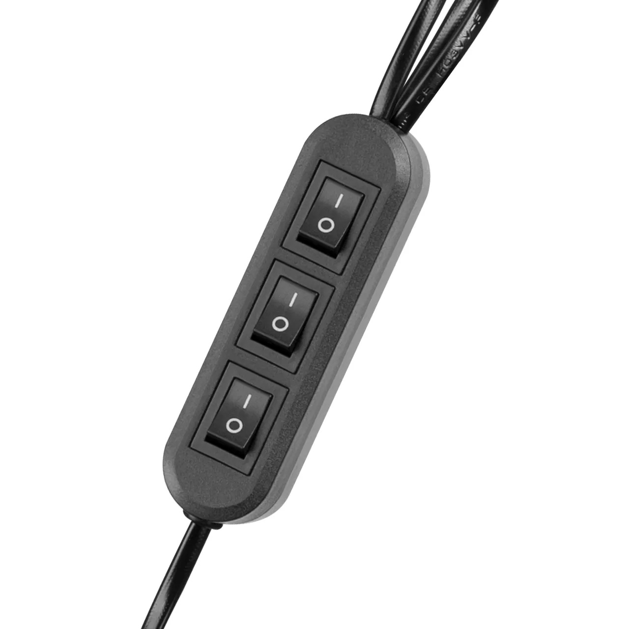 Lampa została przystosowana do pracy przy napięciu 230V. Gwint E27 umożliwia zastosowanie trzech wymiennych źródeł światła o maksymalnej mocy 18W każde. Brak żarówek w zestawie daje użytkownikowi pełną swobodę w wyborze barwy i natężenia światła – od ciepłego, relaksującego klimatu po chłodniejsze, funkcjonalne oświetlenie do pracy.
