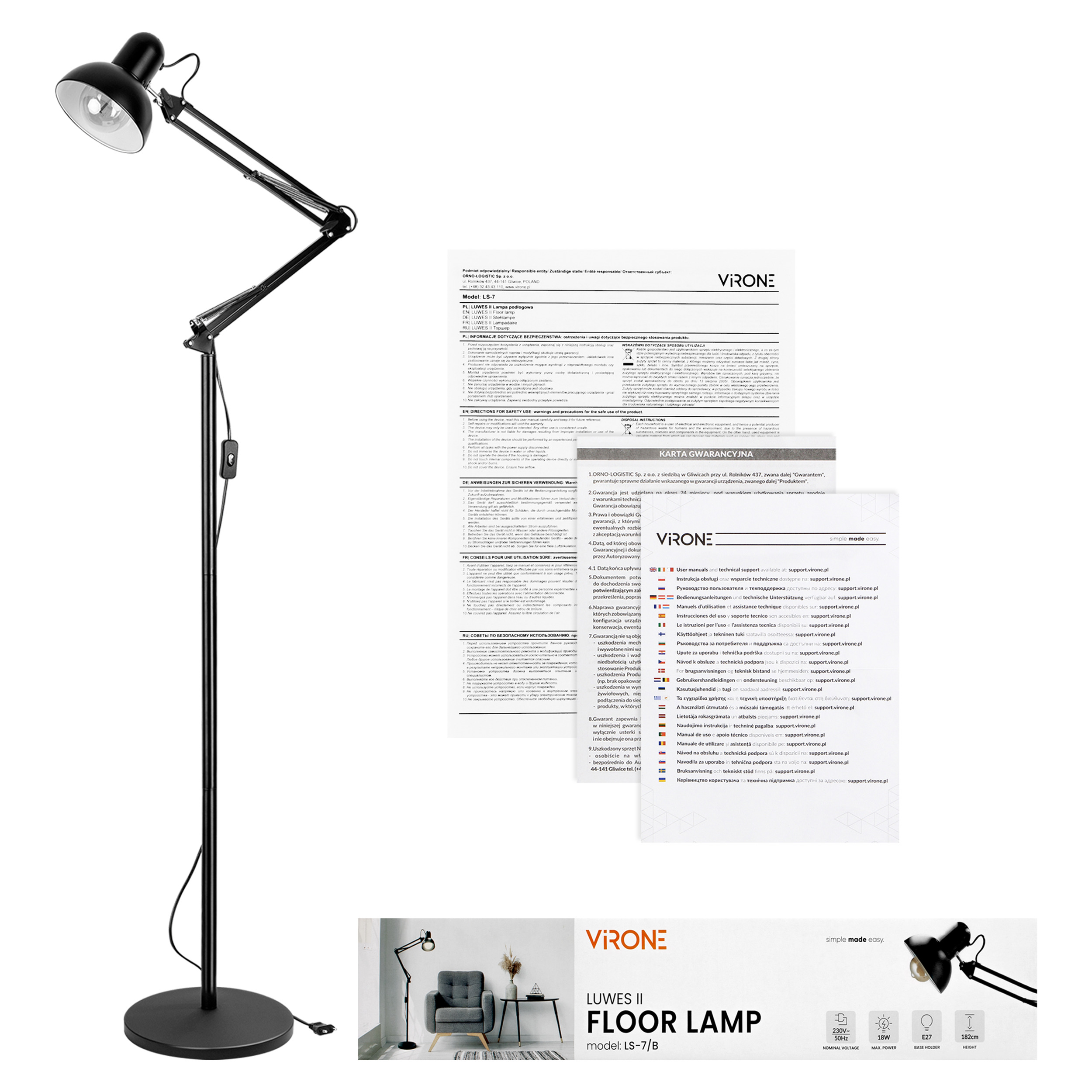 LUWES II, lampa podłogowa, E27, max. 18W, 182 cm, czarna
