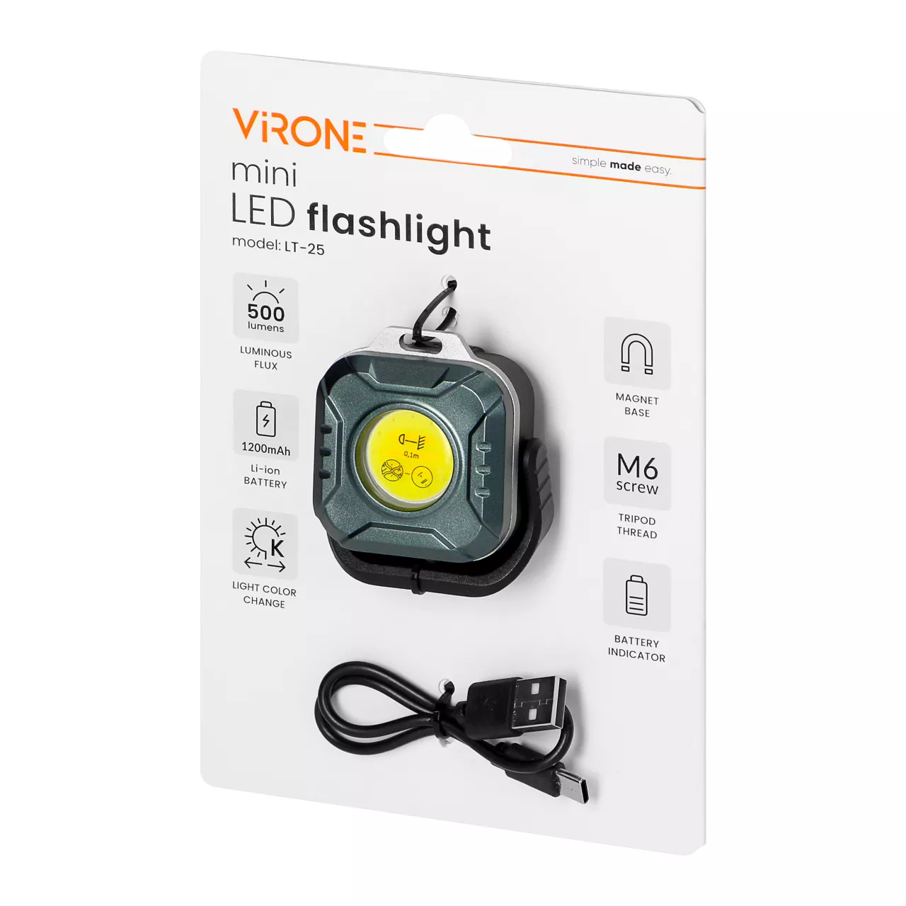 Mini latarka LED COB, 500lm, 1200mAh, CCT