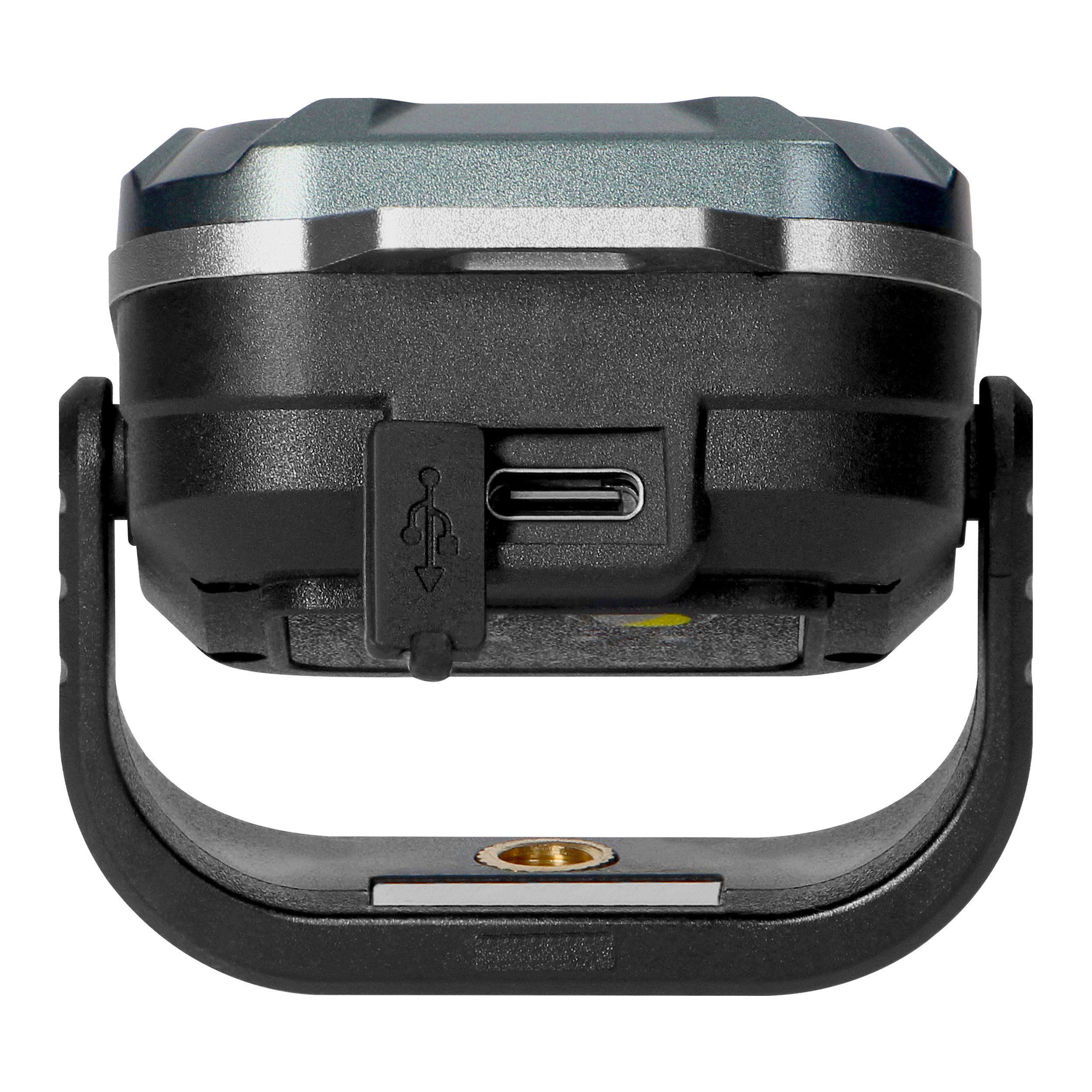 Latarka wyposażona jest w ruchomą podstawkę, która umożliwia precyzyjnie ustawić kierunek światła. Wbudowany magnes oraz gwint pod śrubę M6 pozwalają na stabilne zamocowanie urządzenia na metalowych powierzchniach lub na małym statywie. Dodatkowy otwór na zawieszkę umożliwia zawieszenie latarki w dowolnym miejscu.