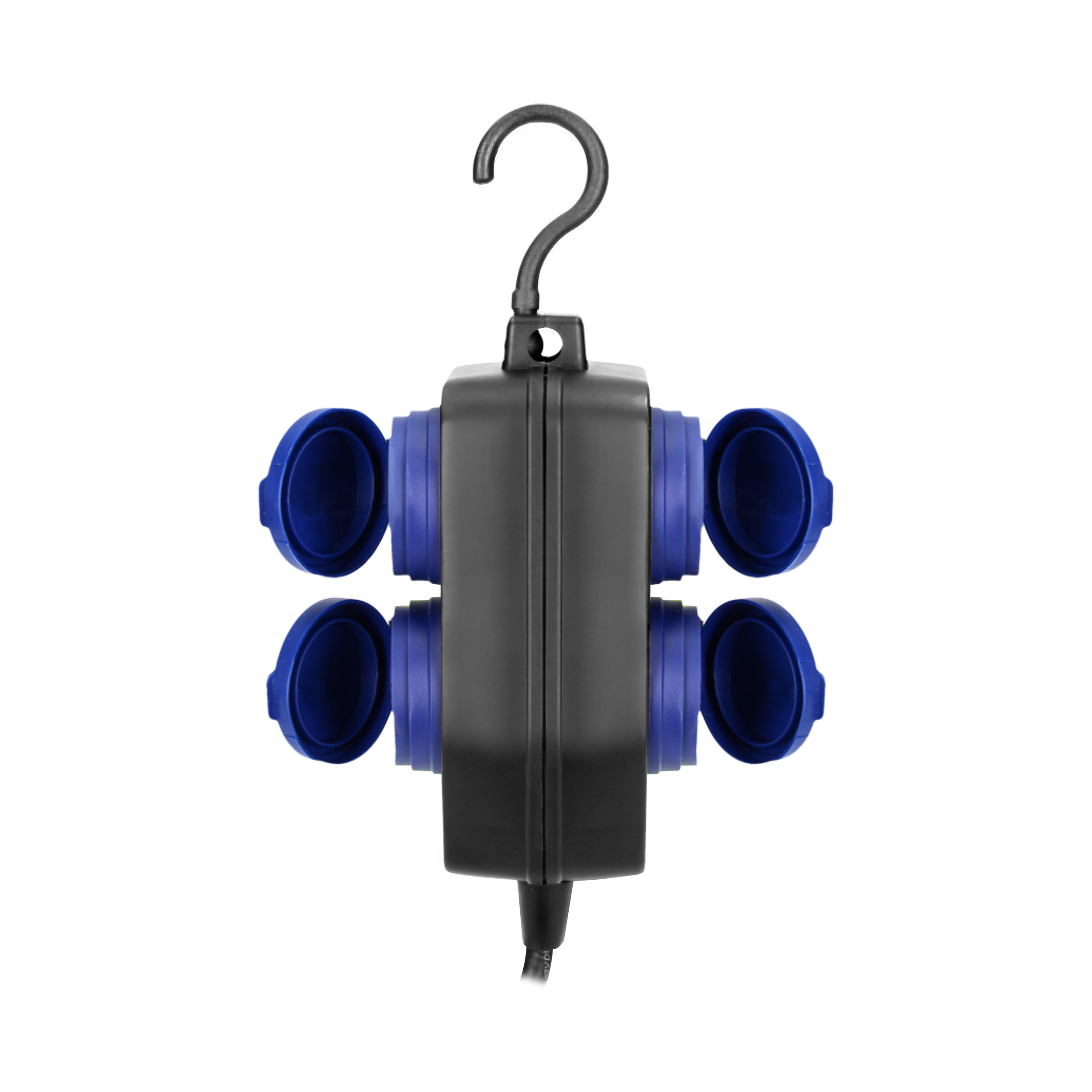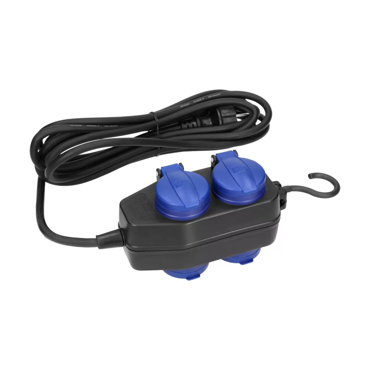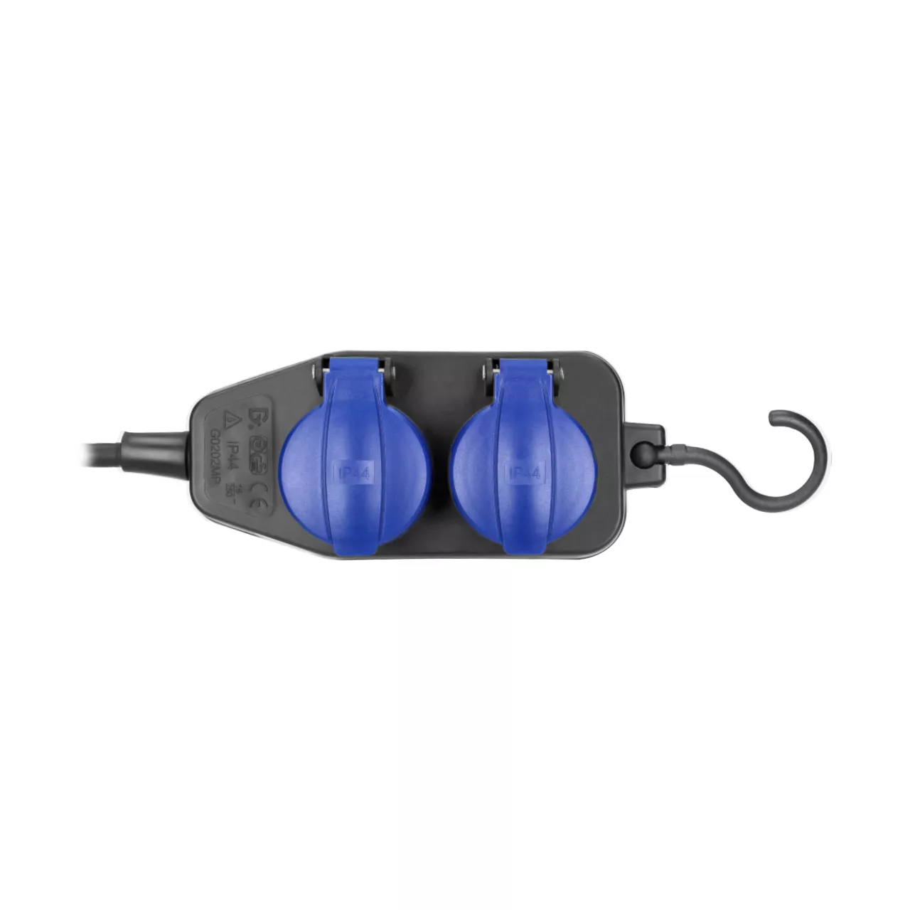 Przedłużacz warsztatowy bryzgoszczelny IP44, 4 gniazda (2+2) 2P+Z IP44, schuko, przewód gumowy, H05RR-F 3x1,5mm², 5m