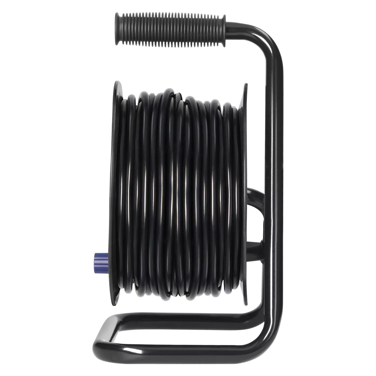 Dzięki swojej wytrzymałej konstrukcji z wysokiej jakości tworzywa sztucznego zapewnia spokój i bezpieczeństwo. Kabel w izolacji PVC o długości 25 m i specyfikacji H05VV-F 3x1,5 mm² daje elastyczność i swobodę w użytkowaniu, bez obawy o zbyt długi dystans od gniazdka. Przedłużacz posiada zabezpieczenie prądowe w postaci wyłącznika termicznego, które gwarantuje płynną pracę nawet przy intensywnym użytkowaniu. Maksymalne obciążenie wynosi 1100W/4,78A w przypadku zwiniętego kabla i 3200W/13,9A przy rozwiniętym kablu. Bez obaw można podłączyć nawet najbardziej wymagające urządzenia