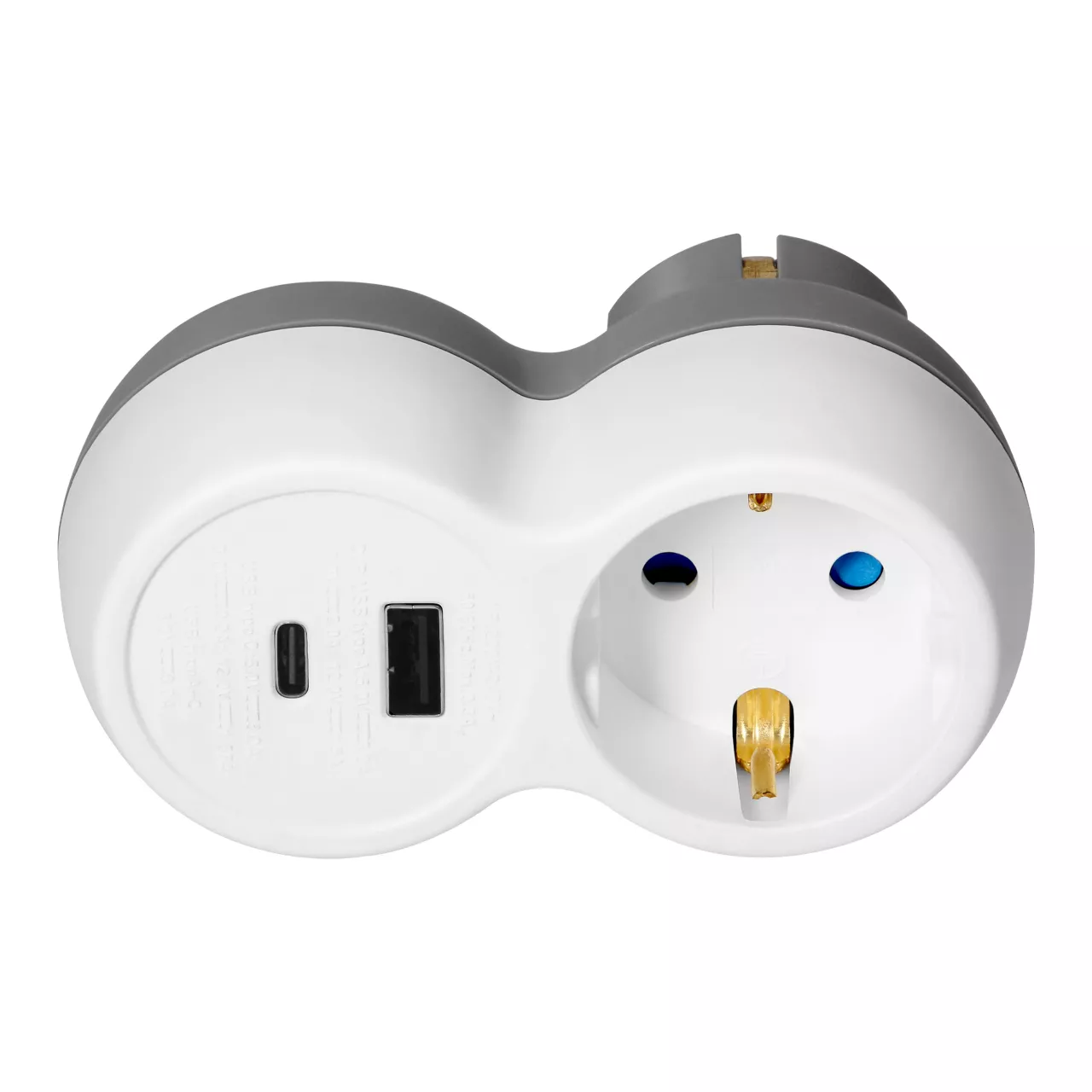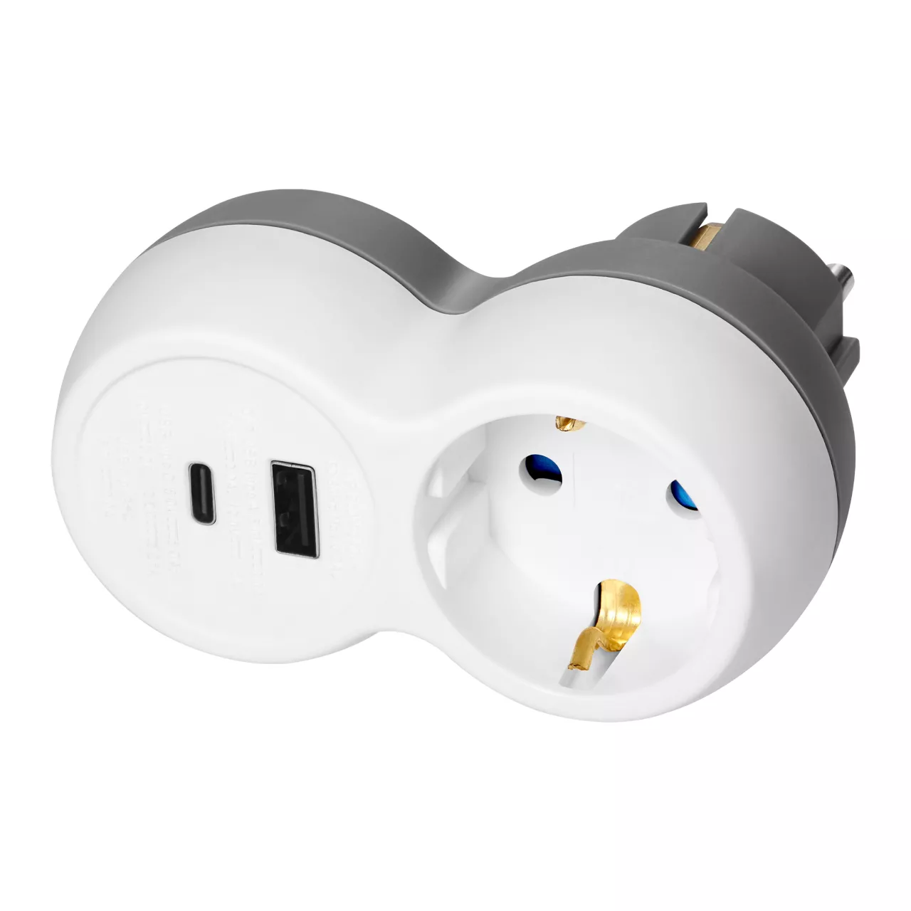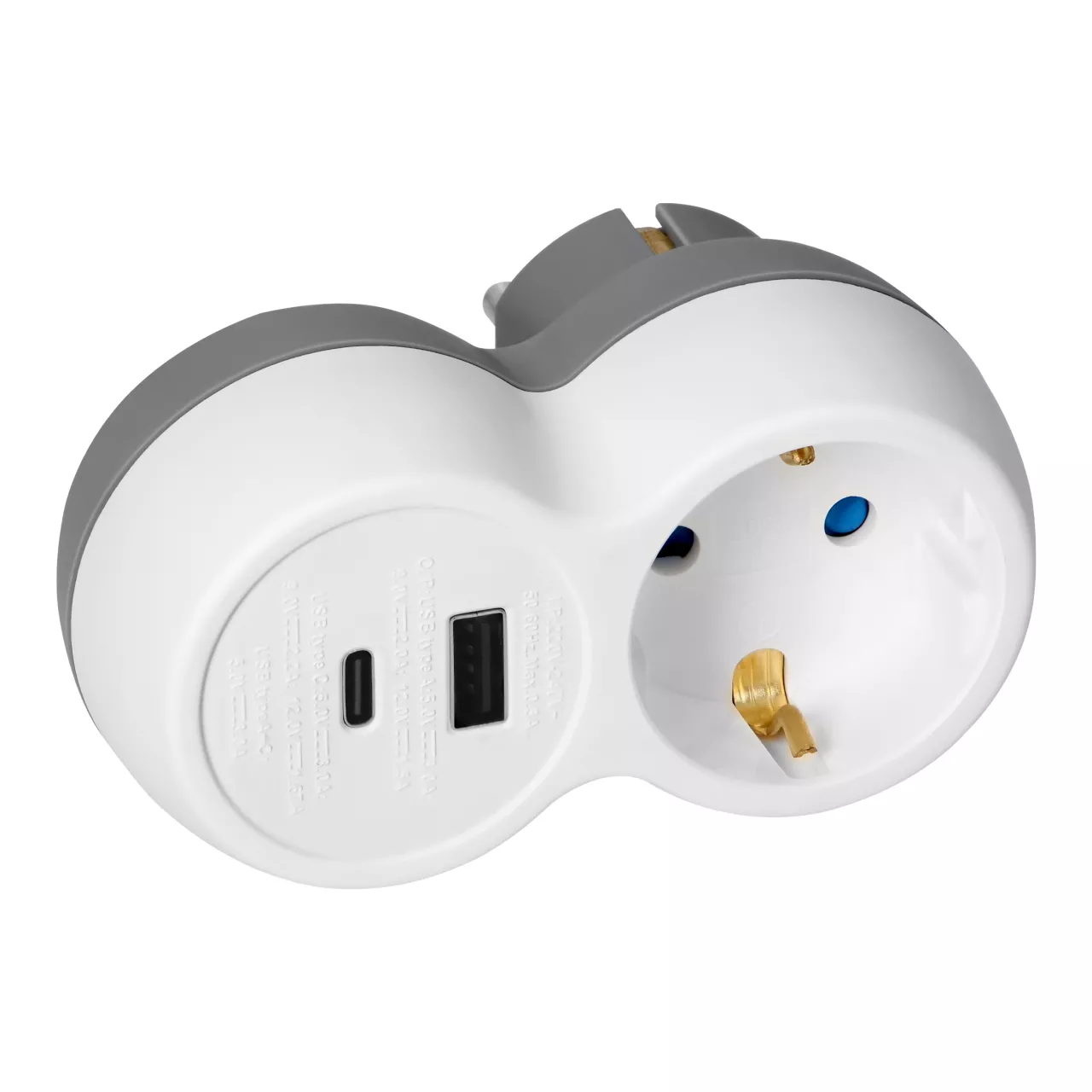 Rozgałęźnik 2P+Z, USB-A+C, schuko, biało-szary