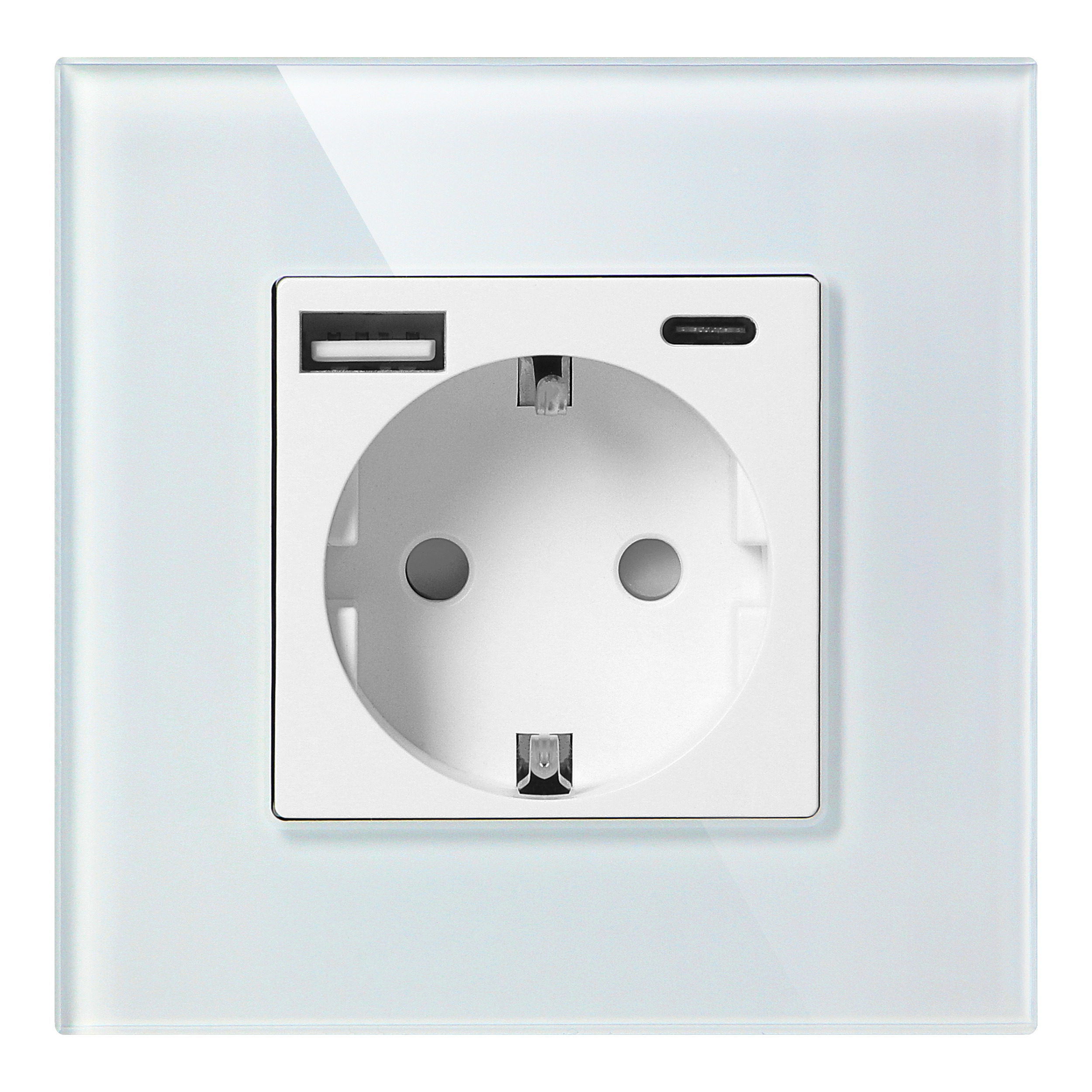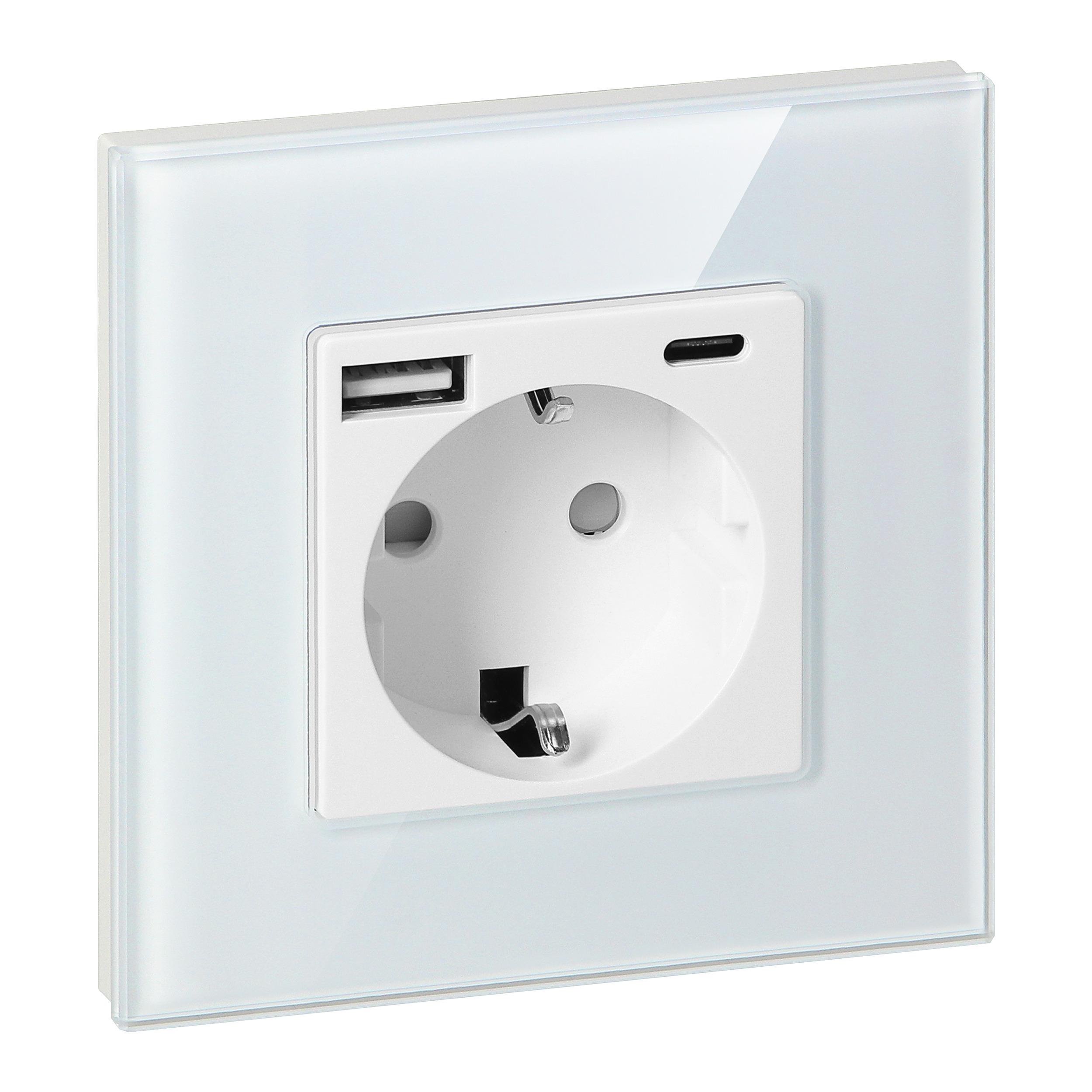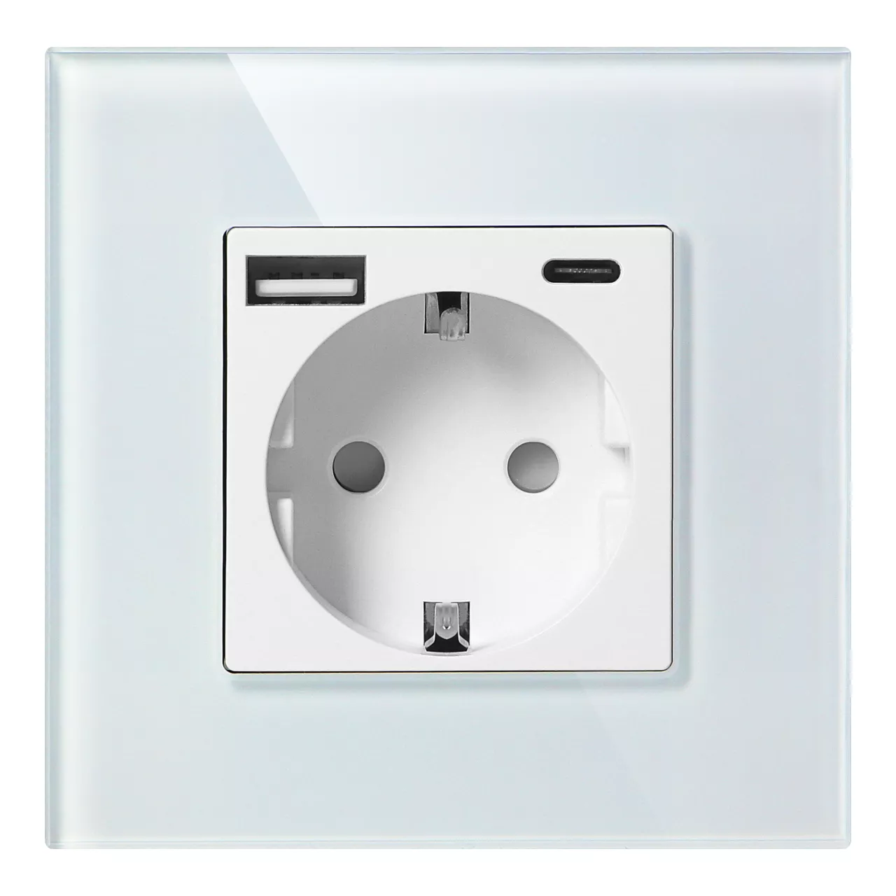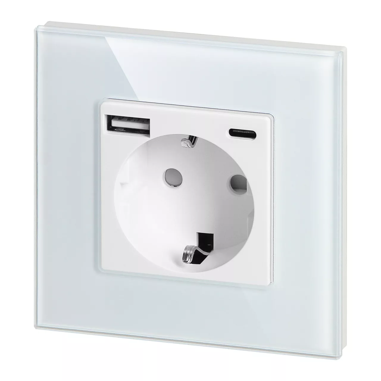 Gniazdo wyposażone jest w dwa porty USB (A+C), do ładowania urządzeń mobilnych, w tym telefonów, tabletów, a także urządzeń marki Apple, takich jak np. iPhone czy iPad. Maksymalna moc wyjściowa ładowarki 20W, zapewnia szybkie i efektywne ładowanie.