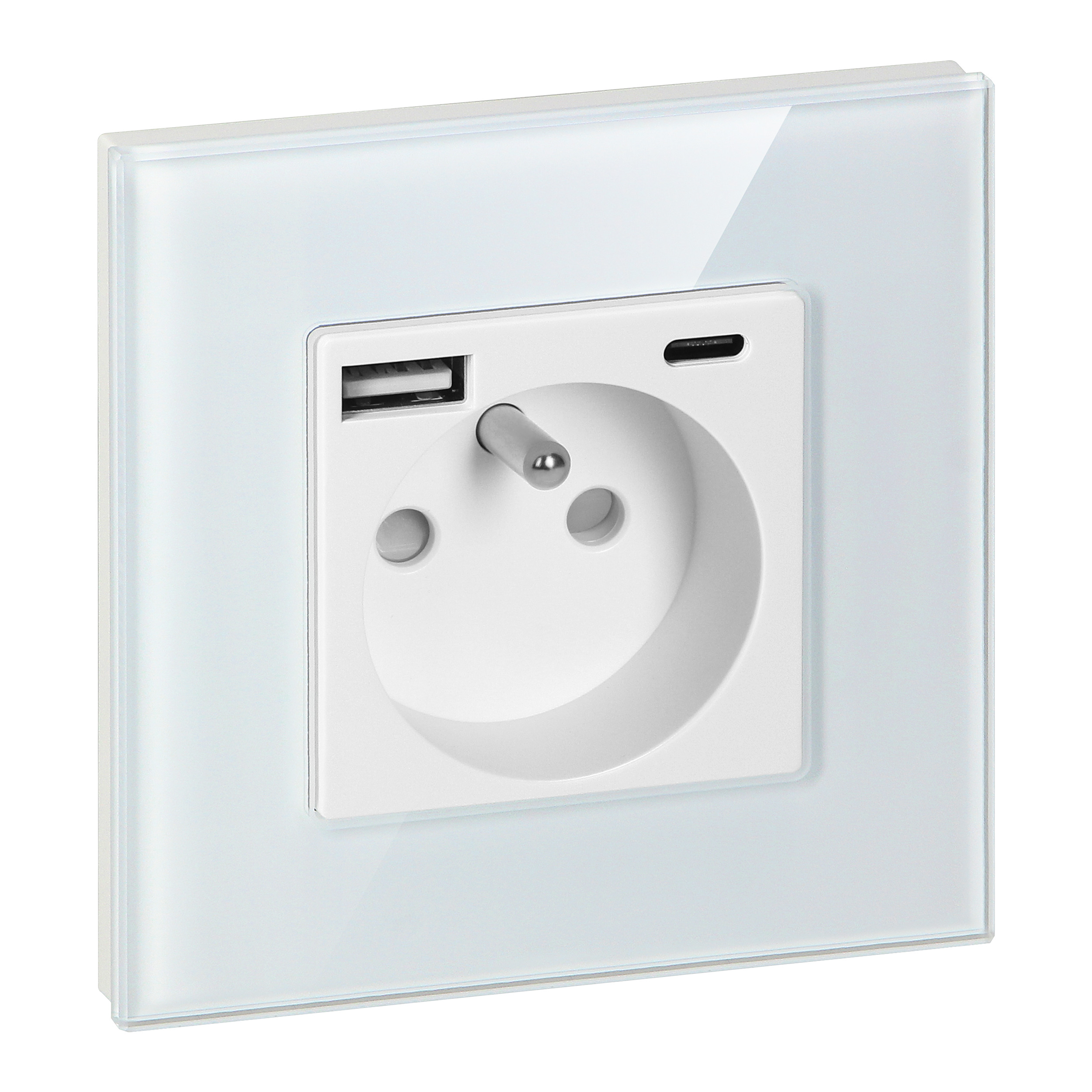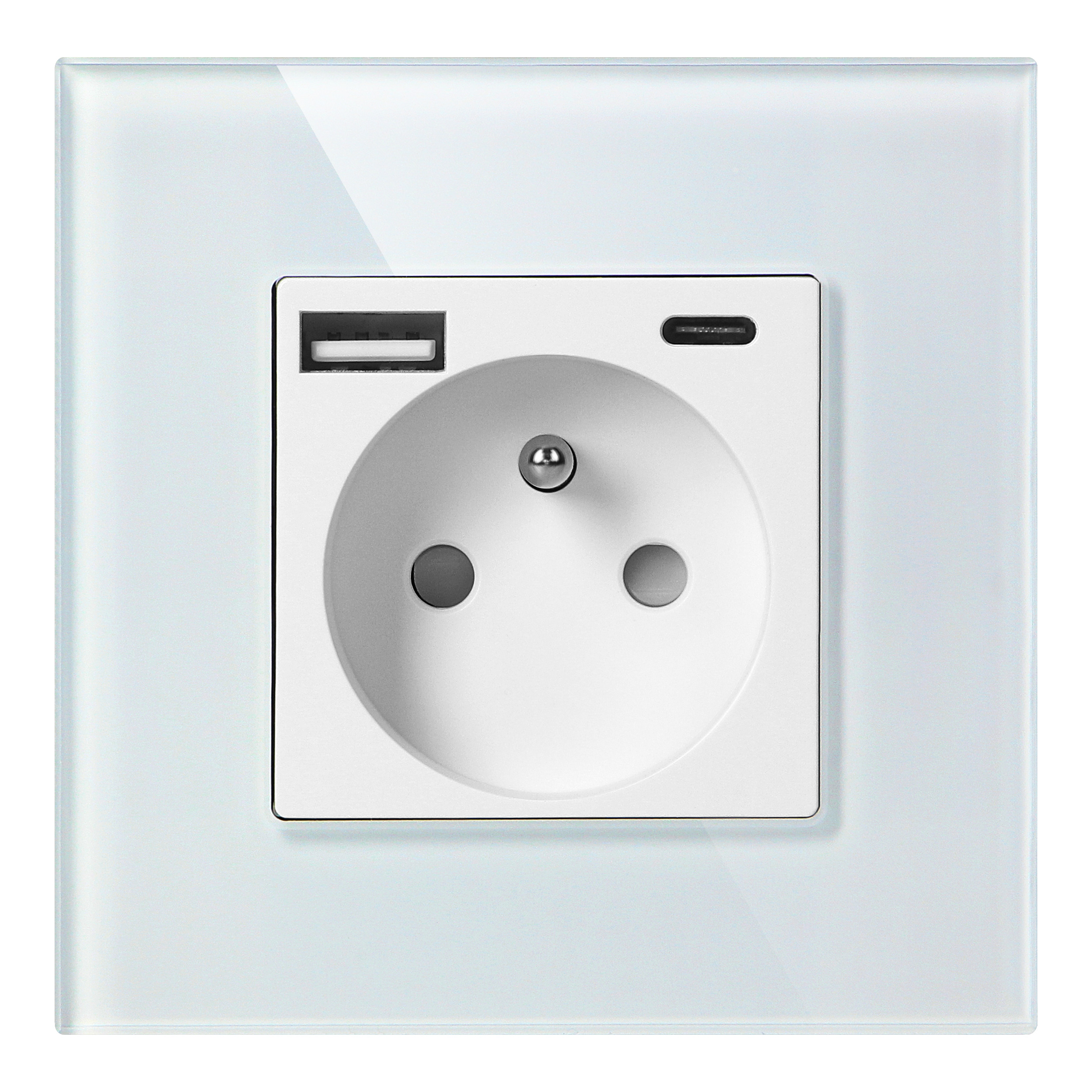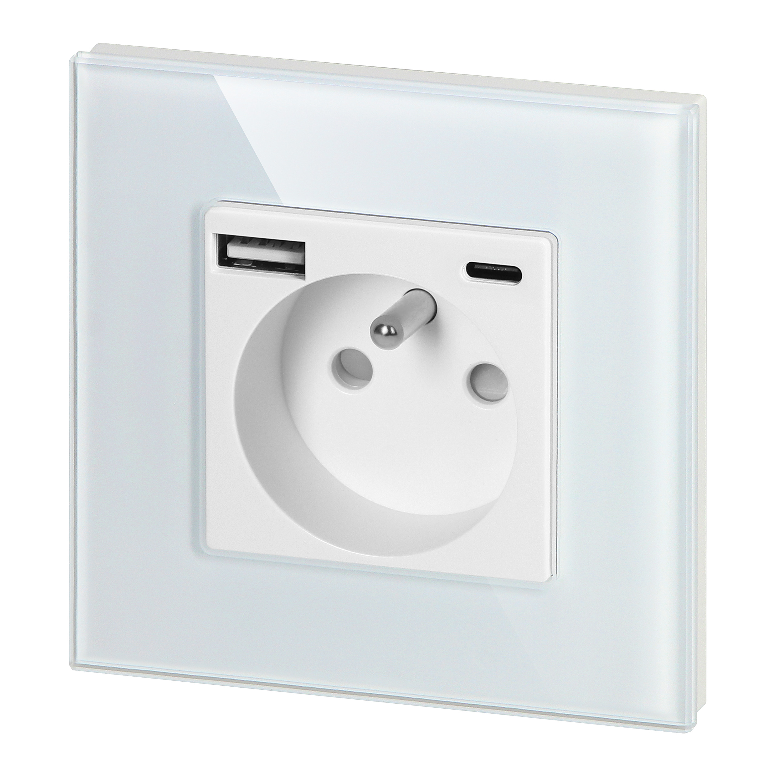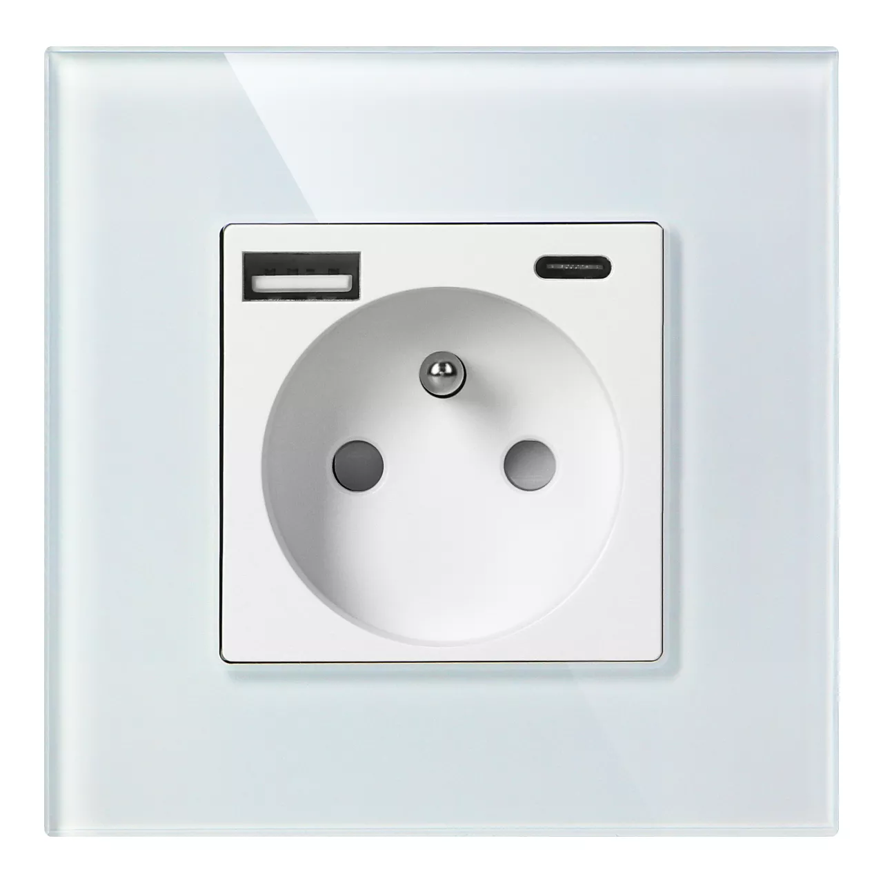 Gniazdo wyposażone jest w dwa porty USB (A+C), do ładowania urządzeń mobilnych, w tym telefonów, tabletów, a także urządzeń marki Apple, takich jak np. iPhone czy iPad. Maks. Moc wyjściowa ładowarki 20W, zapewnia szybkie i efektywne ładowanie.