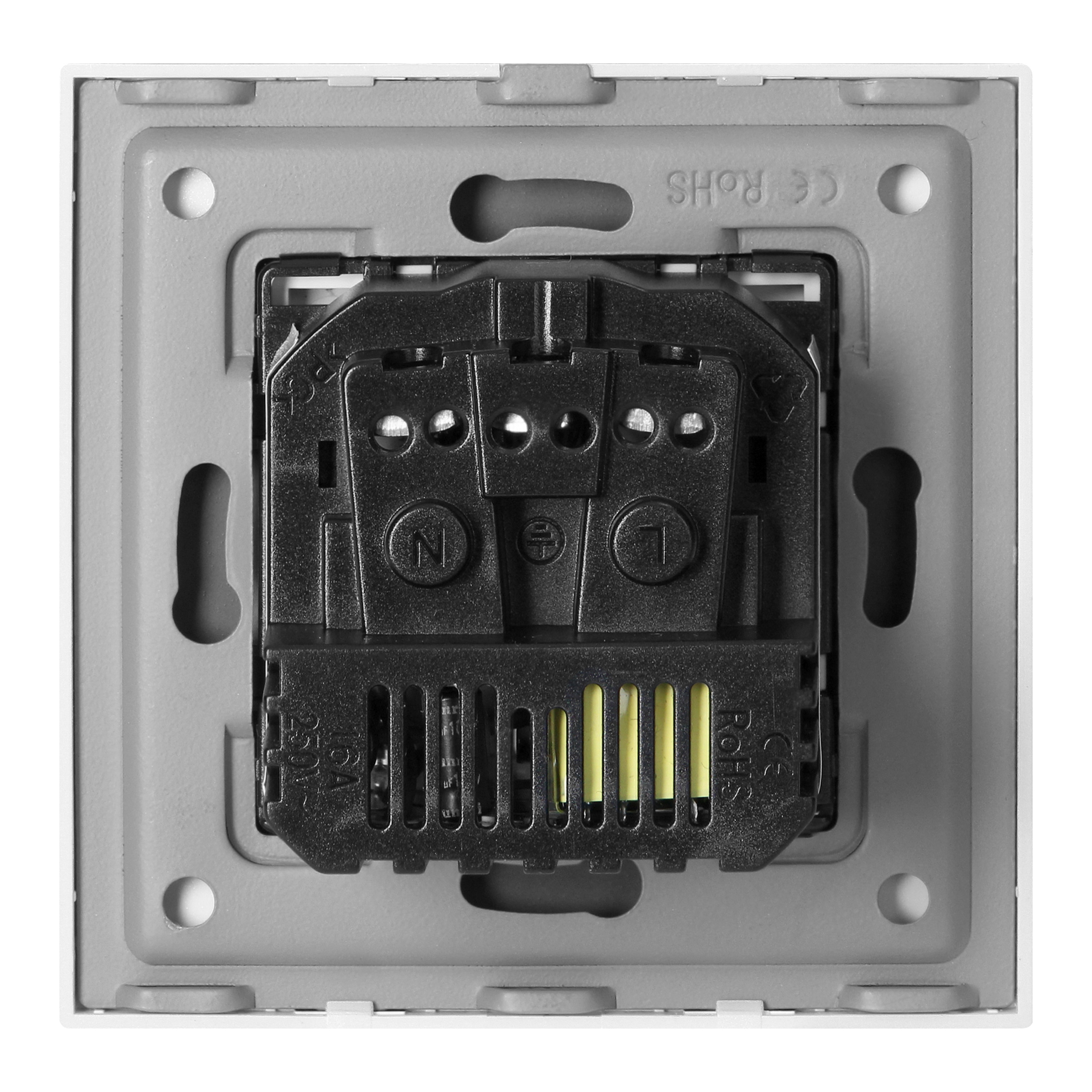 Produkt wykonany ze szkła, zapewnia nowoczesny i elegancki wygląd, który wpasuje się w nowoczesne wnętrza. Wymiary: 87x87x10 mm. Dostępne w kolorach białym i czarnym.