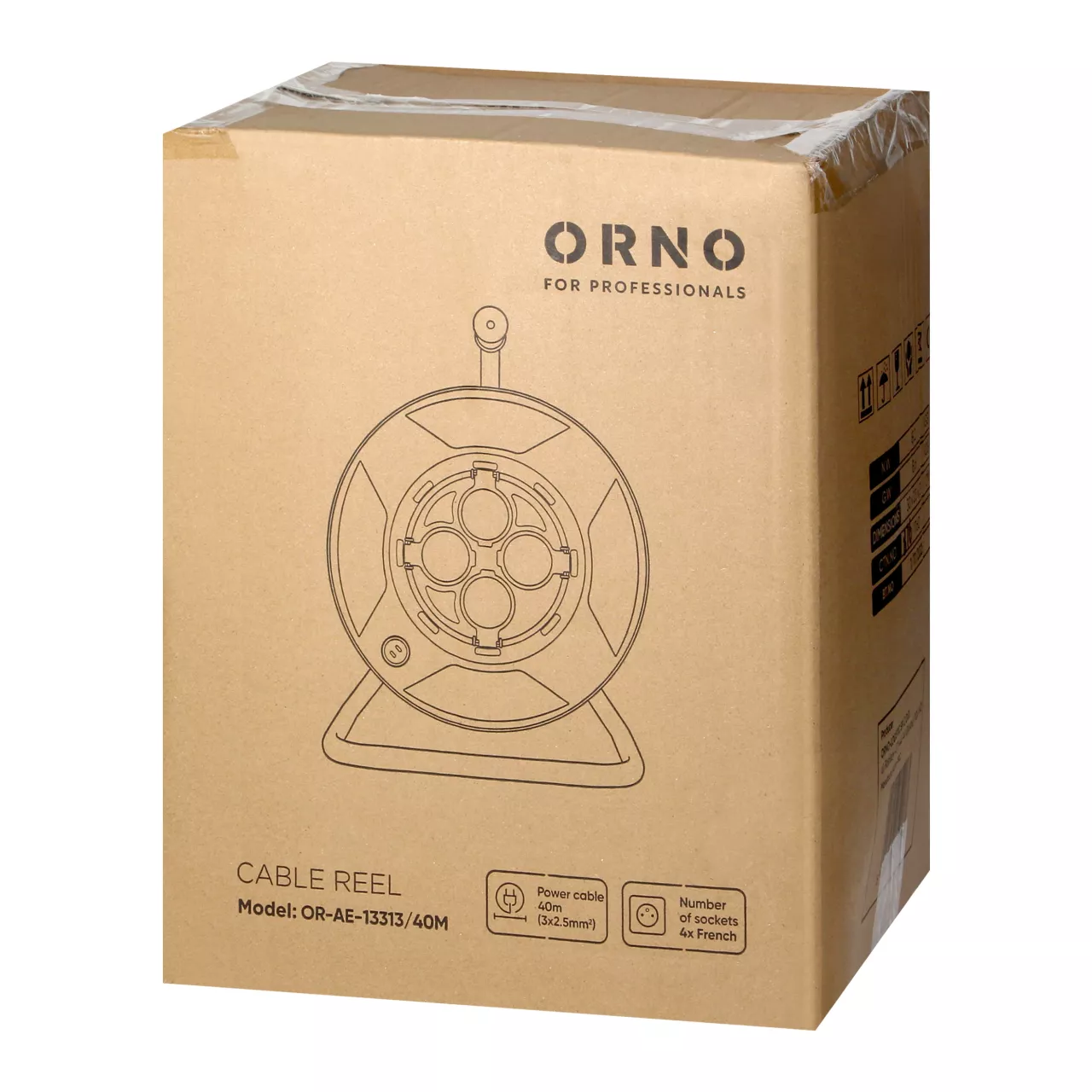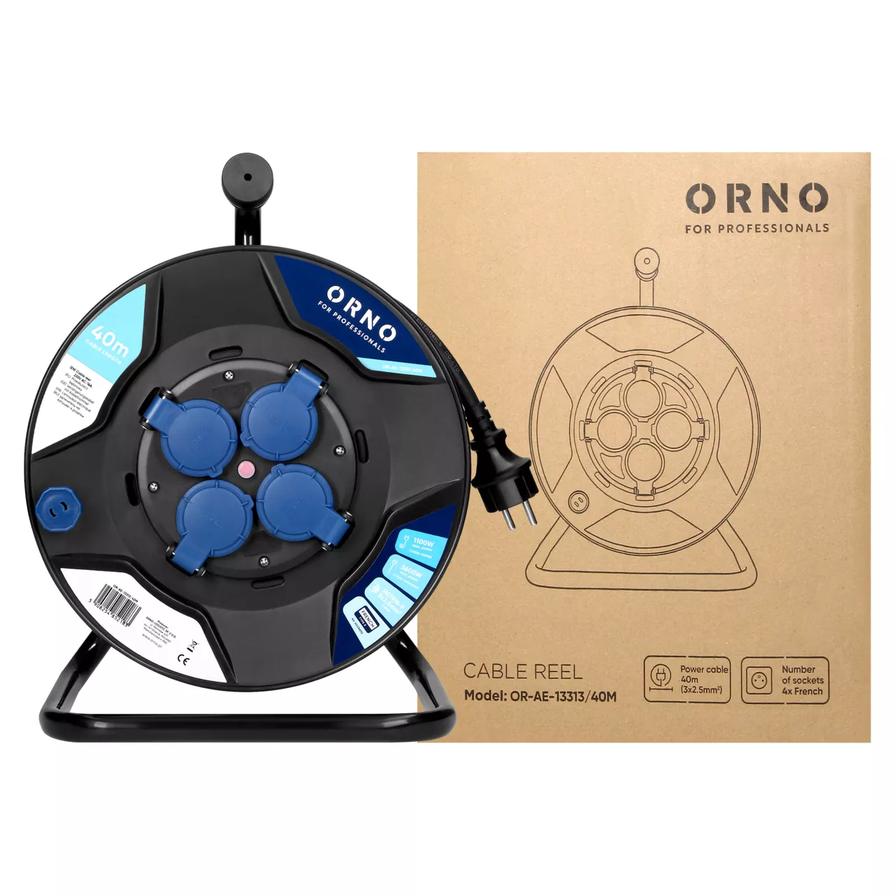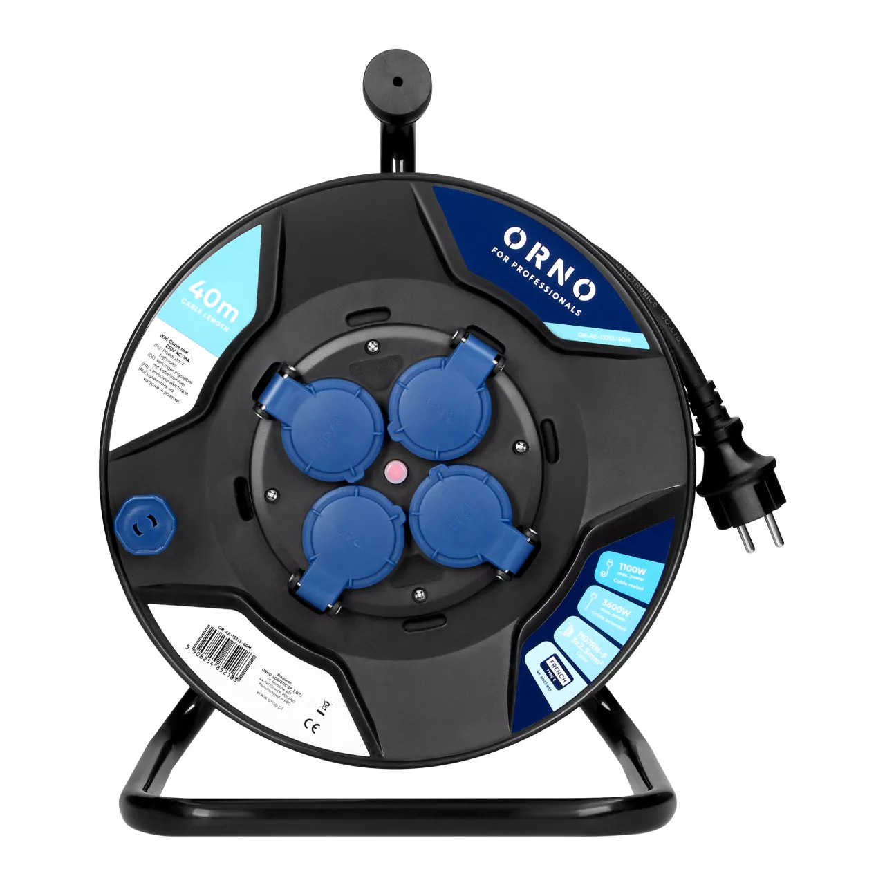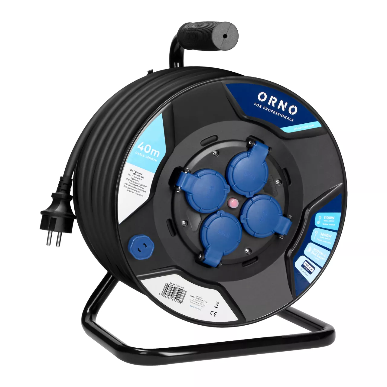 Przedłużacz bębnowy, 4 gniazda 2P+Z, kabel PVC H07RN-F 3x2,5mm², długość 40m, termik, przesłony torów prądowych