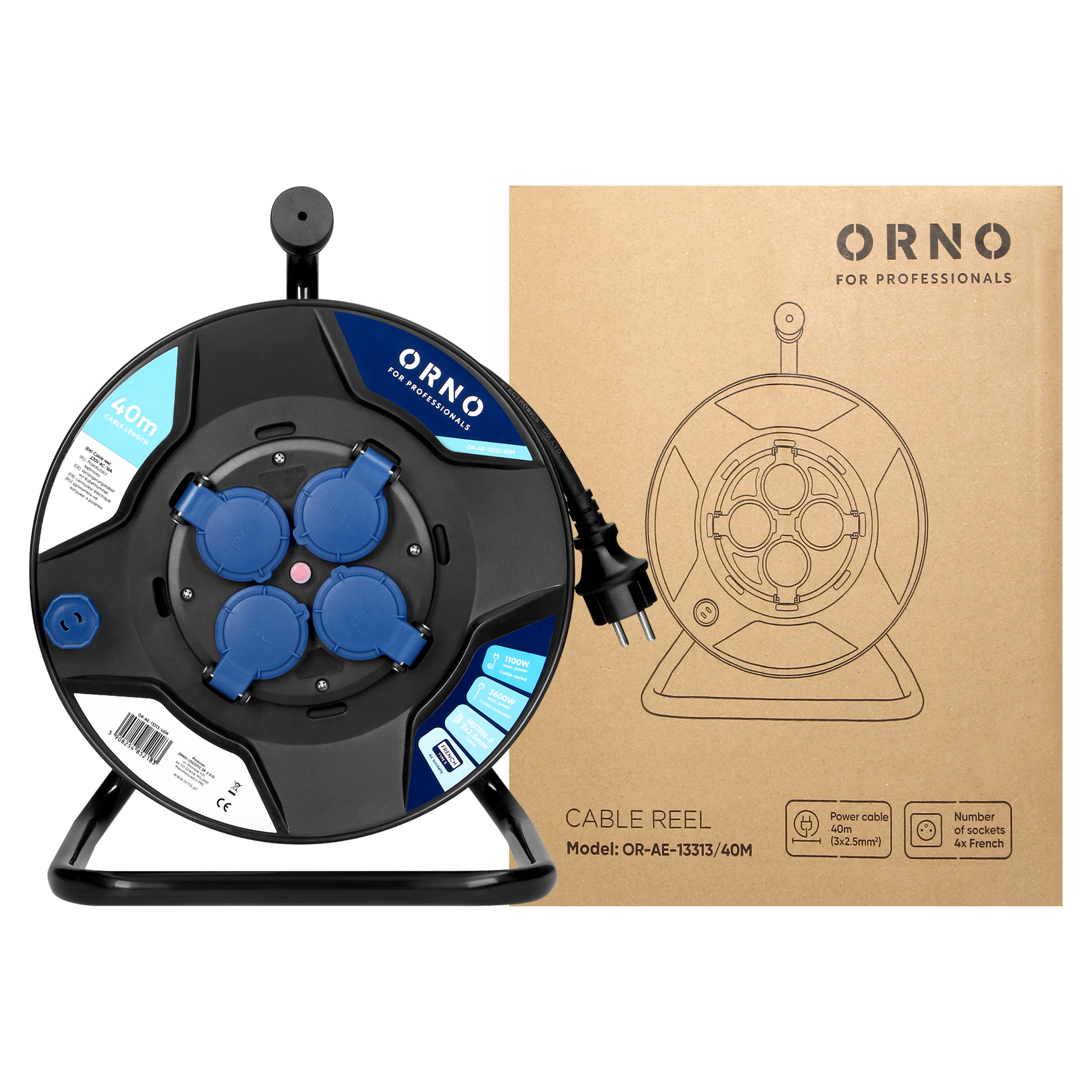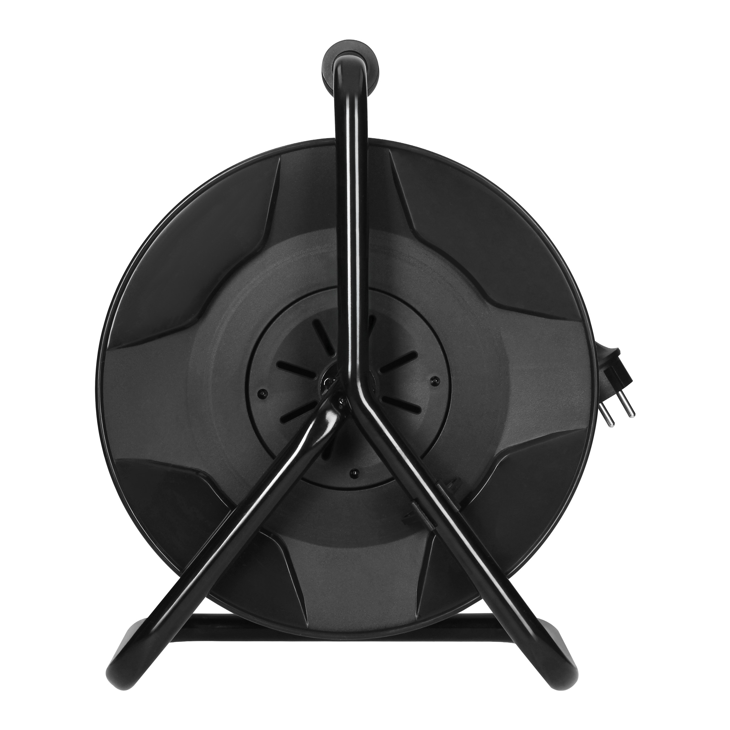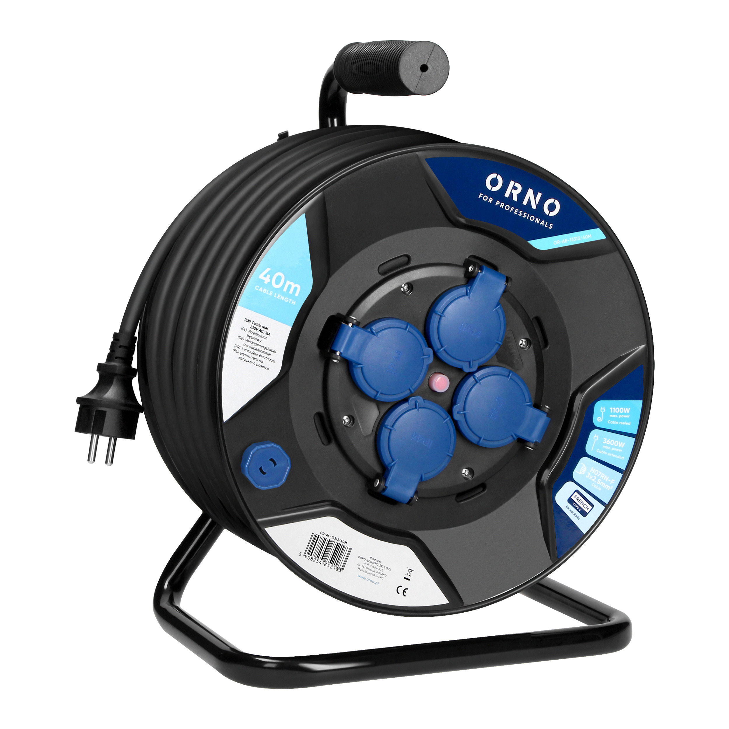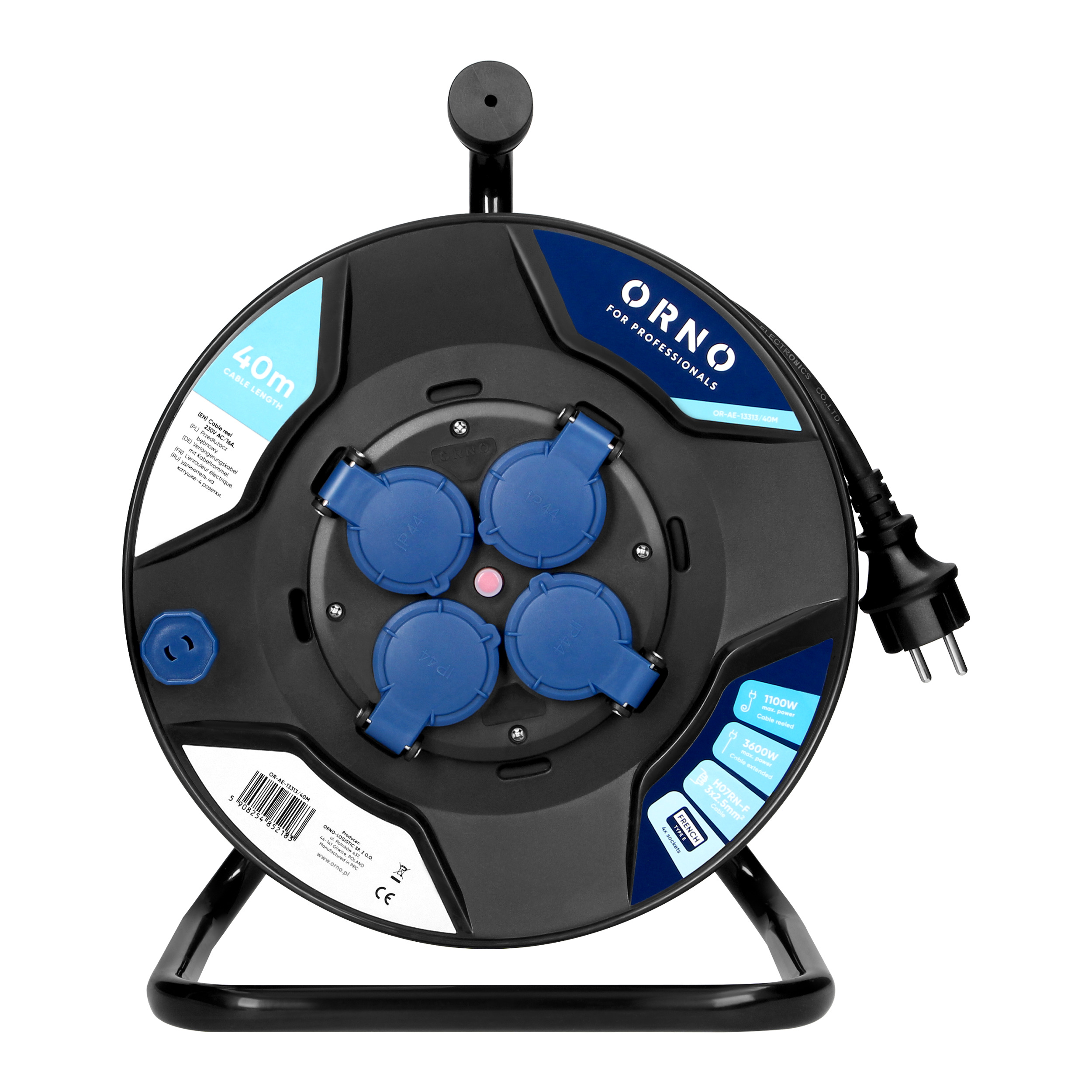 Kabel w izolacji PVC o długości 40 m i specyfikacji H05RN-F 3x2,5 mm² daje elastyczność i swobodę w użytkowaniu, bez obawy o zbyt długi dystans od gniazdka. Przedłużacz posiada zabezpieczenie prądowe w postaci wyłącznika termicznego, które gwarantuje płynną pracę nawet przy intensywnym użytkowaniu. Maksymalne obciążenie wynosi 1100W/4,78A w przypadku zwiniętego kabla i 3680W/16A przy rozwiniętym kablu. Bez obaw można podłączyć cztery nawet najbardziej wymagające urządzenia jednocześnie.