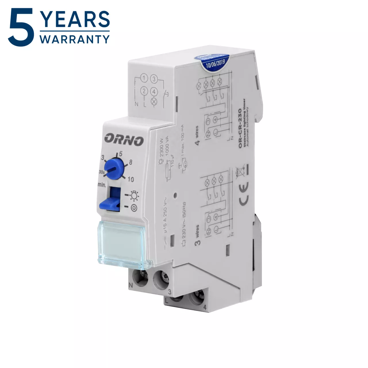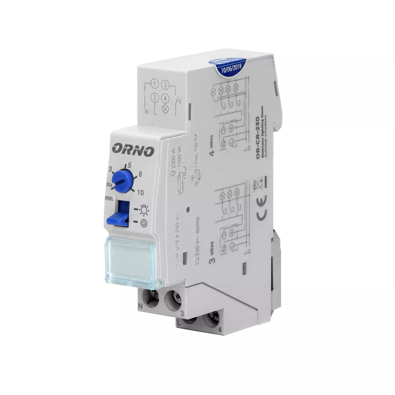 Automat schodowy, instalacja 3 lub 4 żyłowa, 1 moduł, DIN TH-35mm
