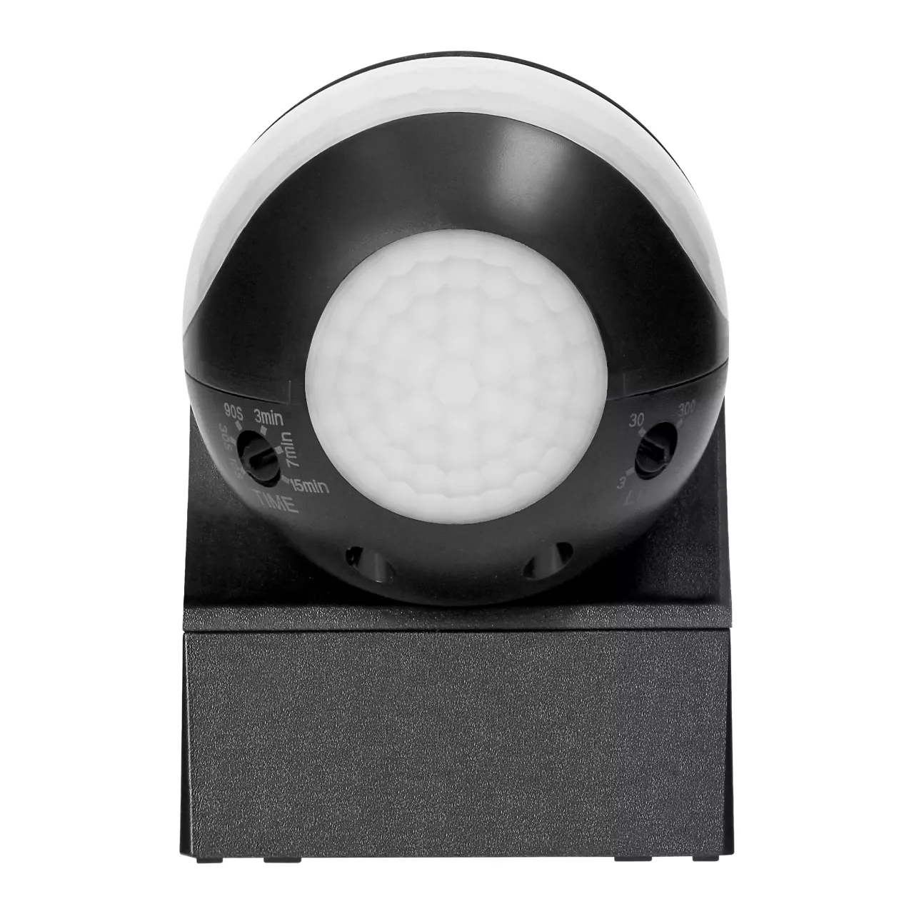 Czujnik charakteryzuje się szerokim kątem skanowania 180°/360°, zapewniając pełne pokrycie monitorowanego obszaru. Urządzenie wykrywa ruch z szybkością od 0,6 do 1,5 m/s i umożliwia regulację natężenia światła w zakresie od <3 do 2000 lx, co pozwala na dostosowanie pracy czujnika do panujących warunków oświetleniowych.