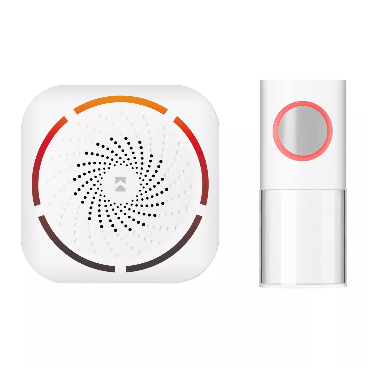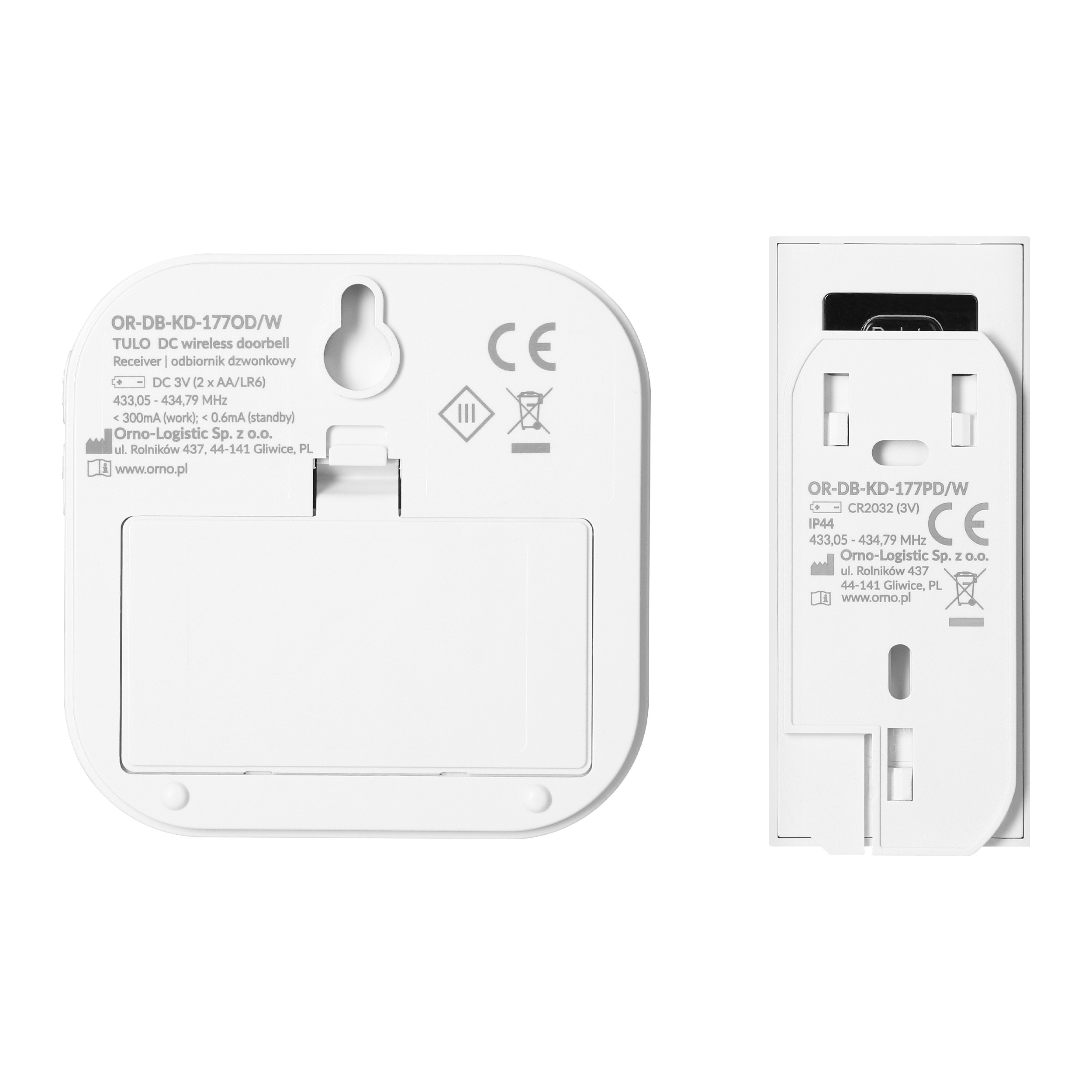 Nadajnik wyróżnia się stopniem ochrony IP44, który zapewnia skuteczne zabezpieczenie przed deszczem i pyłem. Dzięki temu doskonale sprawdza się w zastosowaniach zewnętrznych, nawet podczas trudnych warunków atmosferycznych. Urządzenie wyposażono w podświetlenie, które ułatwia korzystanie z dzwonka po zmroku oraz praktyczną tabliczkę opisową na nazwisko lub numer domu. Zasilanie zapewnia wbudowana bateria CR2032. Wykonany z trwałego tworzywa sztucznego w kolorze białym. Wymiary wynoszą 33x77x18 mm.
