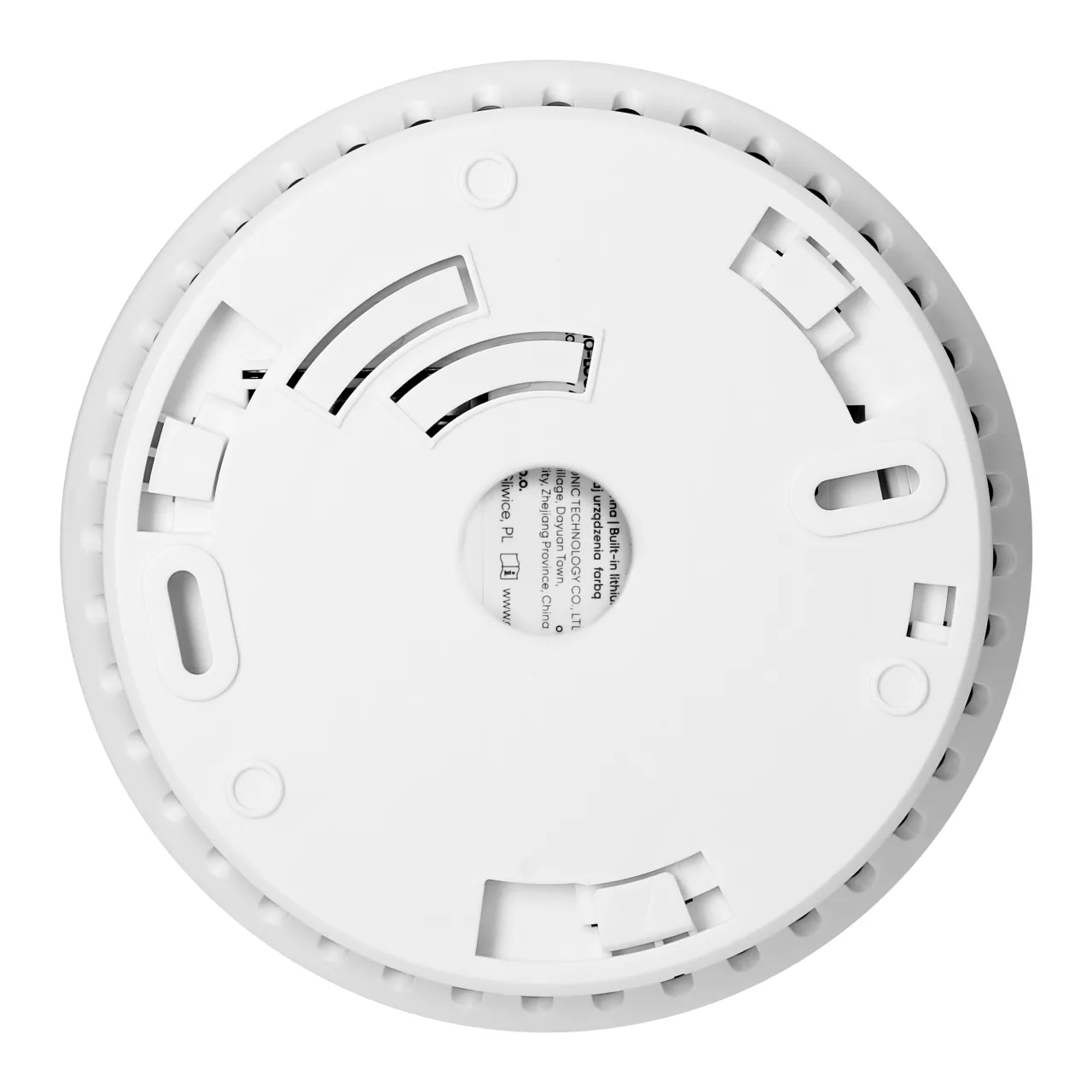 Niewielka i lekka, autonomiczna czujka dymu (⌀120x36,6 mm), przeznaczona jest do samodzielnego montażu i obsługi. Zasilany poprzez wbudowaną baterię CR123A z 10-letnią żywotnością. Urządzenie sygnalizuje zagrożenie - poziom głośności alarmu to 85dB, ale również podpowie nam, kiedy wymienić wyczerpującą się baterię. Dodatkowo wyposażono je też w diodę, która pozwala na optyczną sygnalizację alarmu.