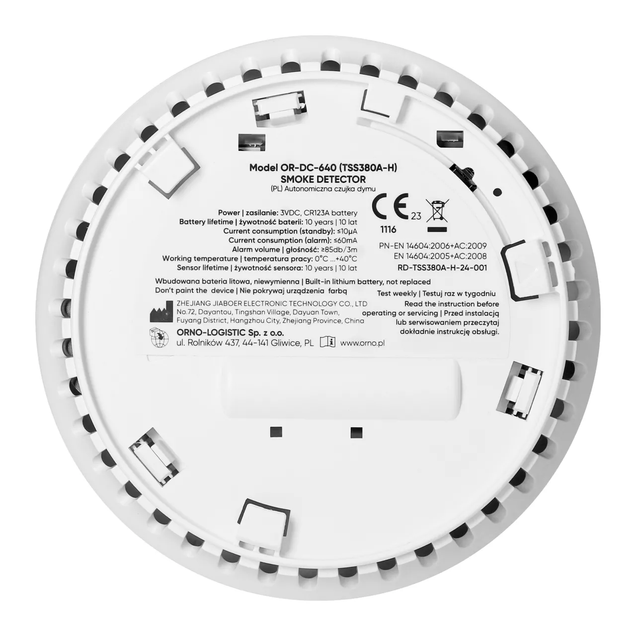 Bateryjny czujnik dymu, wbudowana bateria, żywotność sensora i baterii 10 lat
