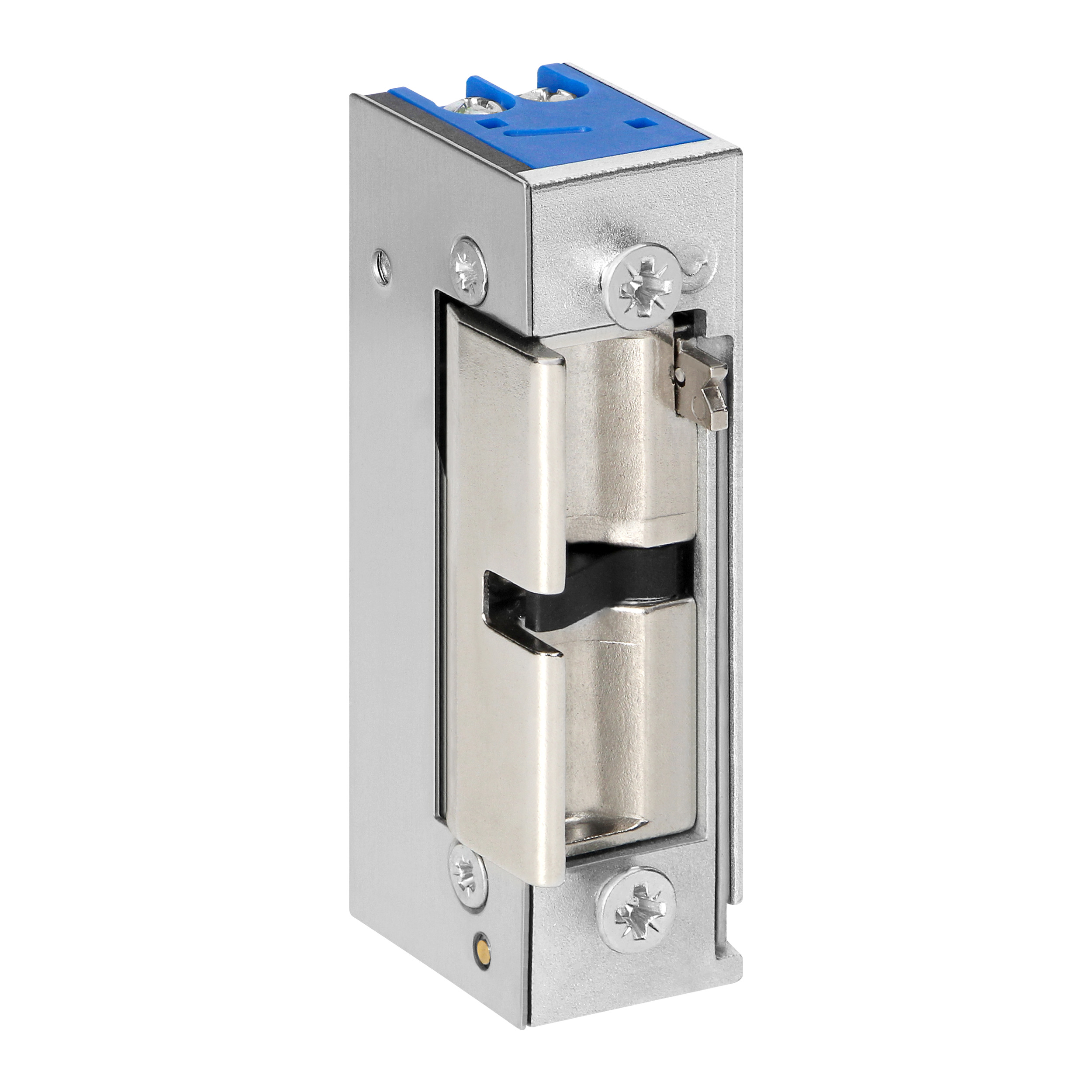 Produkt wyróżnia się mechanizmem blokady, który uniemożliwia zaryglowanie się elektrozaczepu, co powoduje, że drzwi pozostają stale otwarte.