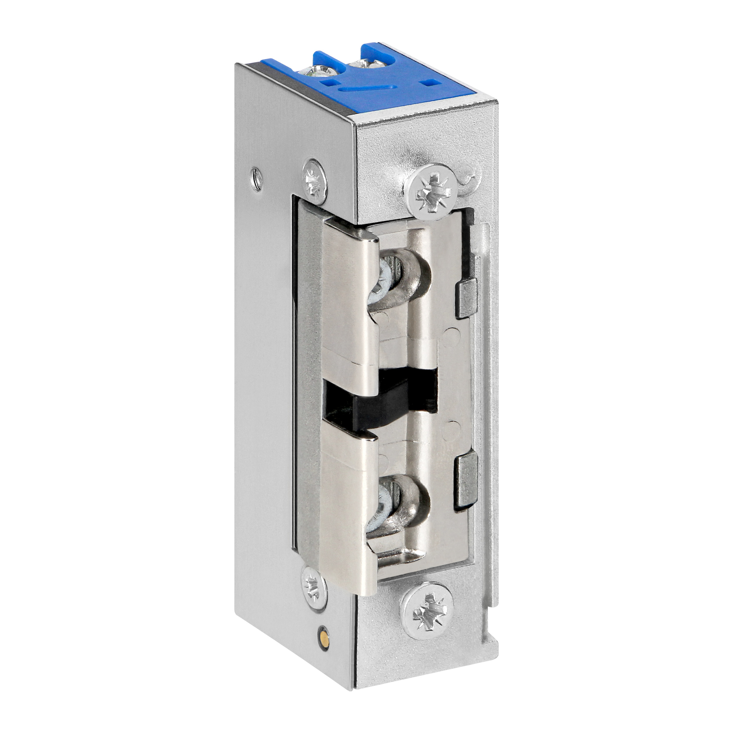 Elektrozaczep symetryczny z pamięcią, przystosowany do obydwu kierunków otwierania drzwi (prawy/lewy). Regulowana zapadka umożliwia dostosowanie elektrozaczepu do różnych drzwi i framug.