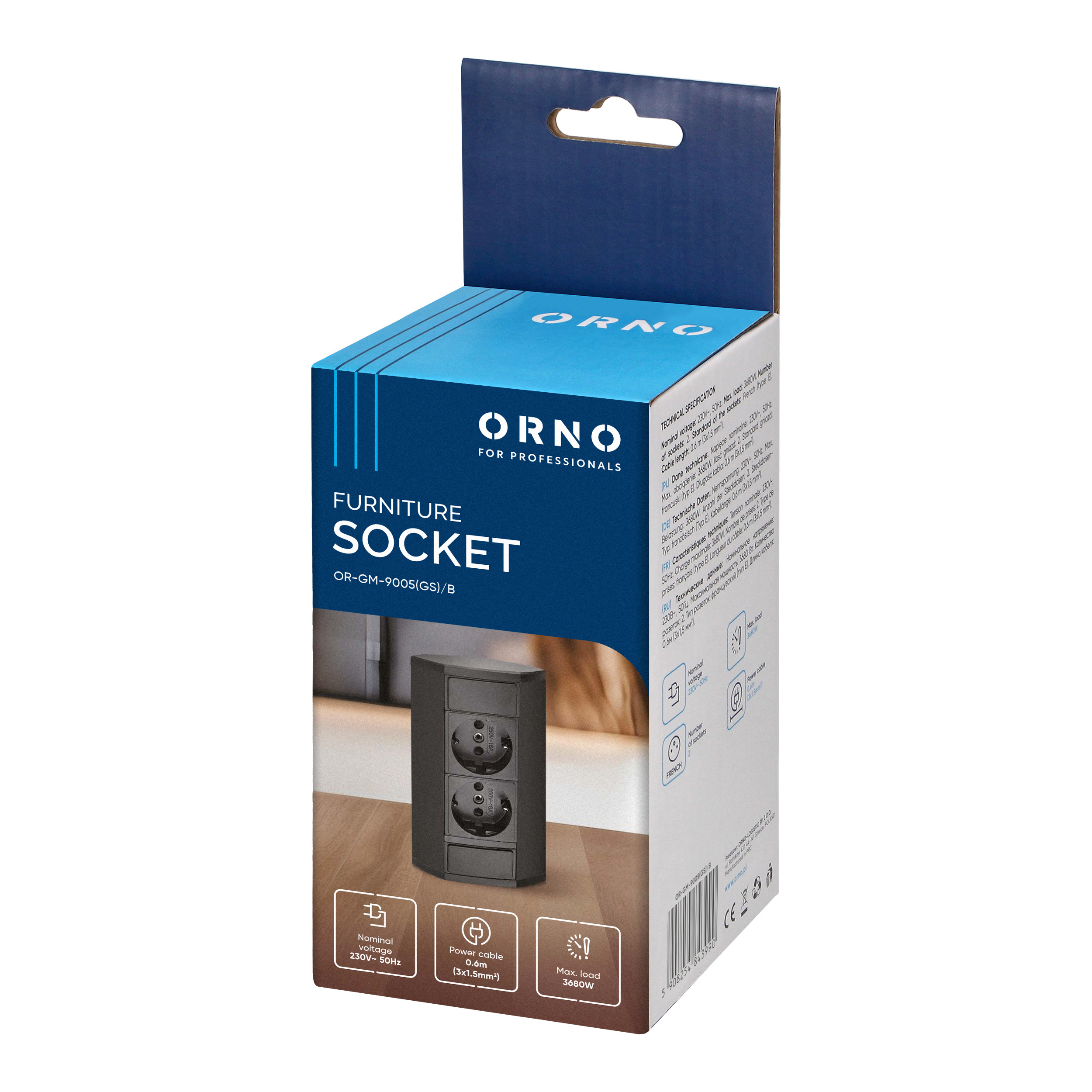 Gniazdo meblowe 2x2P+Z (Schuko), czarne