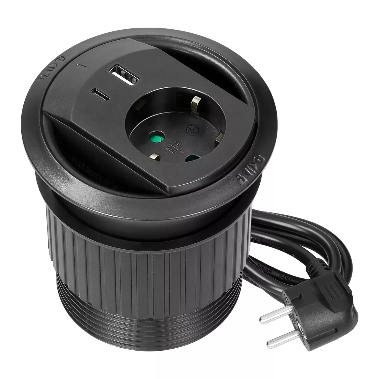 Gniazdo wpuszczane w blat z ładowarką USB, przepustem kablowym, i przewodem 1,4 m, 1x2P+Z (Schuko), 2xUSB (typ A+C; PD20W), czarne