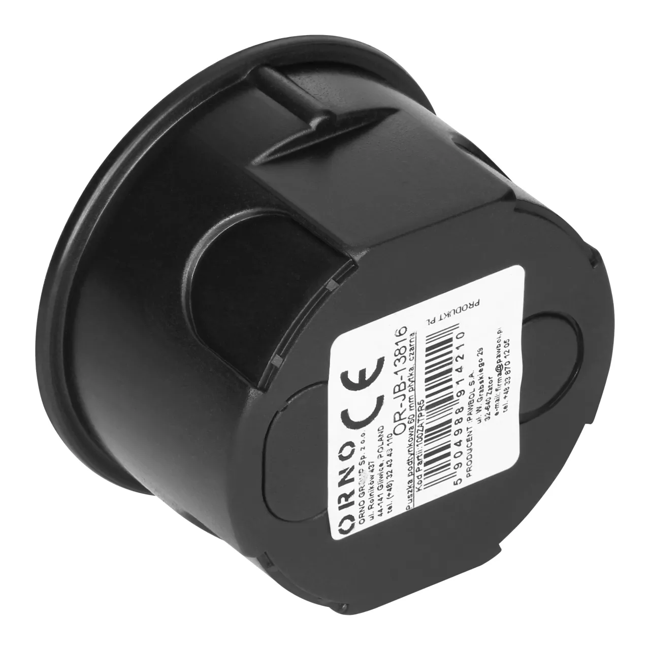 Produkt wykonany jest z tworzywa sztucznego w kolorze czarnym. Charakteryzuje się okrągłym kształtem oraz średnicą 63 mm. Wewnętrzna głębokość wynosząca 40 mm umożliwia montaż w miejscach o ograniczonej przestrzeni.