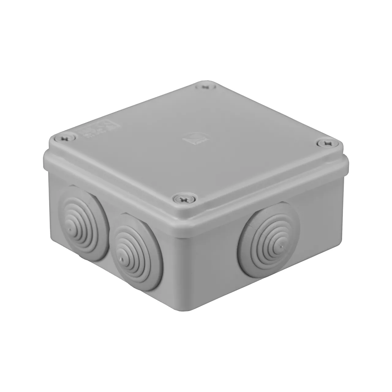 Puszka hermetyczna 100x100x50, 6 dławików, szara, IP65