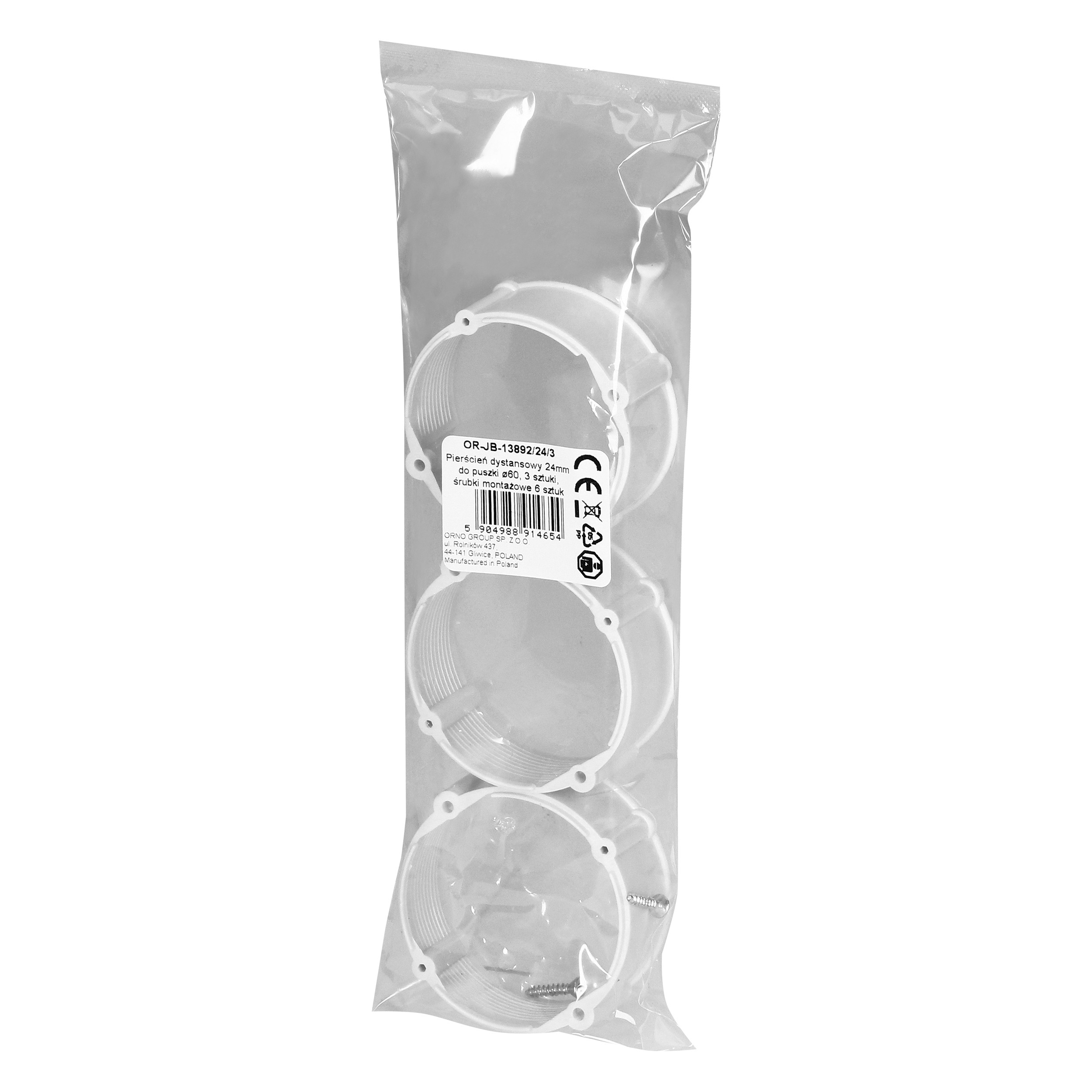 Pierścień dystansowy 24 mm do puszki ∅60, 3 sztuki, śrubki montażowe 6 sztuk