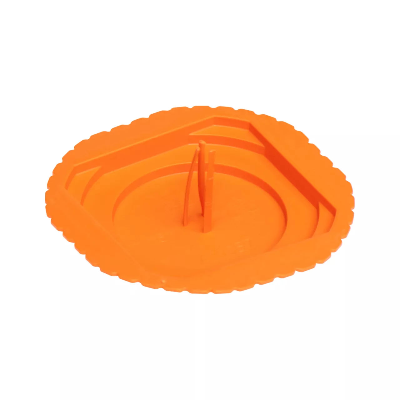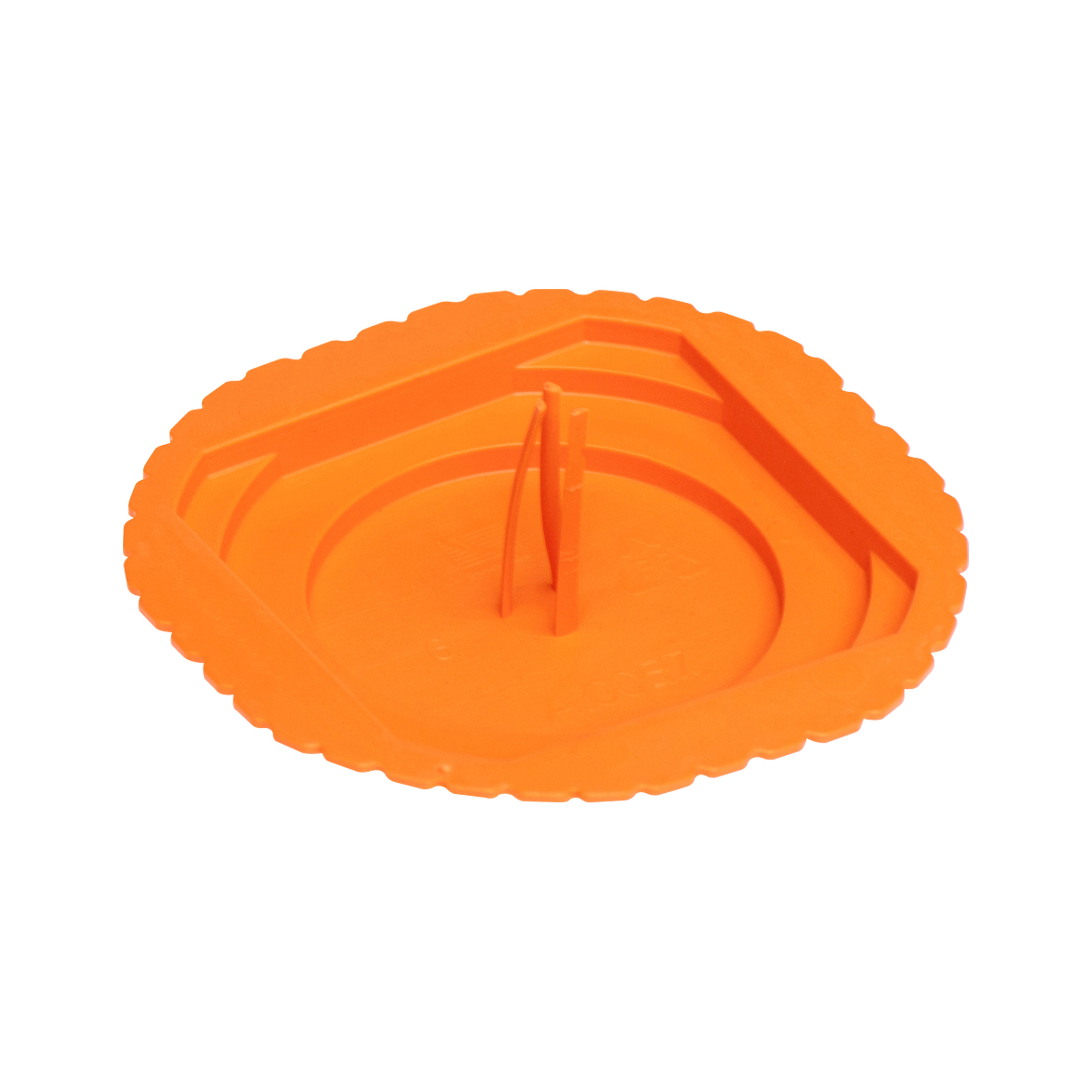 Wykonany z tworzywa sztucznego w kolorze pomarańczowym. Kształt okrągły o średnicy 68 mm.