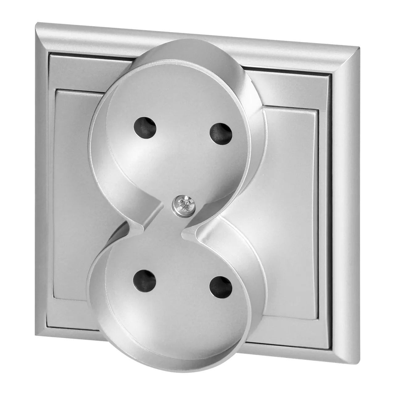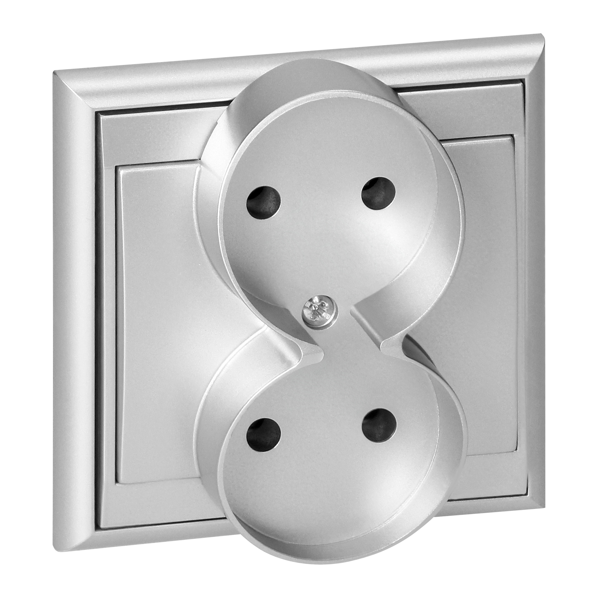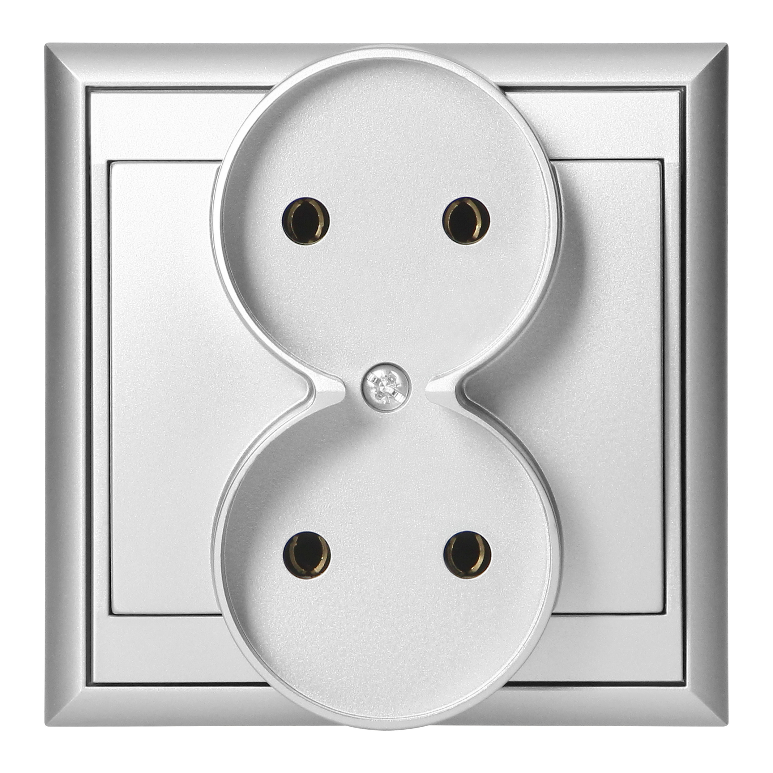 Gniazdo podwójne p/t 2x2P Luna, 16A, 250V, PT-5LR, srebrny