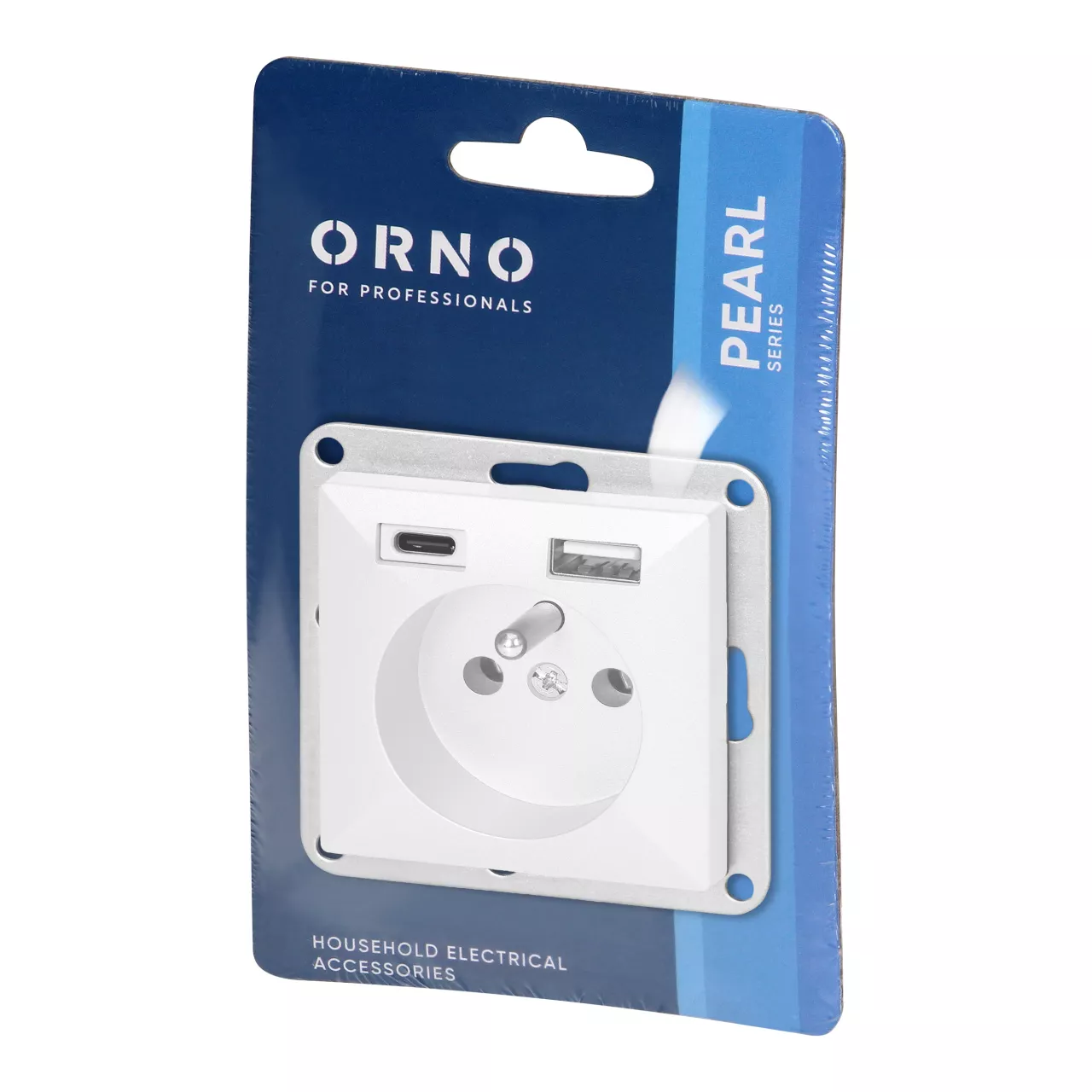 Gniazdo pojedyncze p/t 2P+Z z ładowarką USB A+C Pearl, 16A, 250V, PT-16P/USB, biały